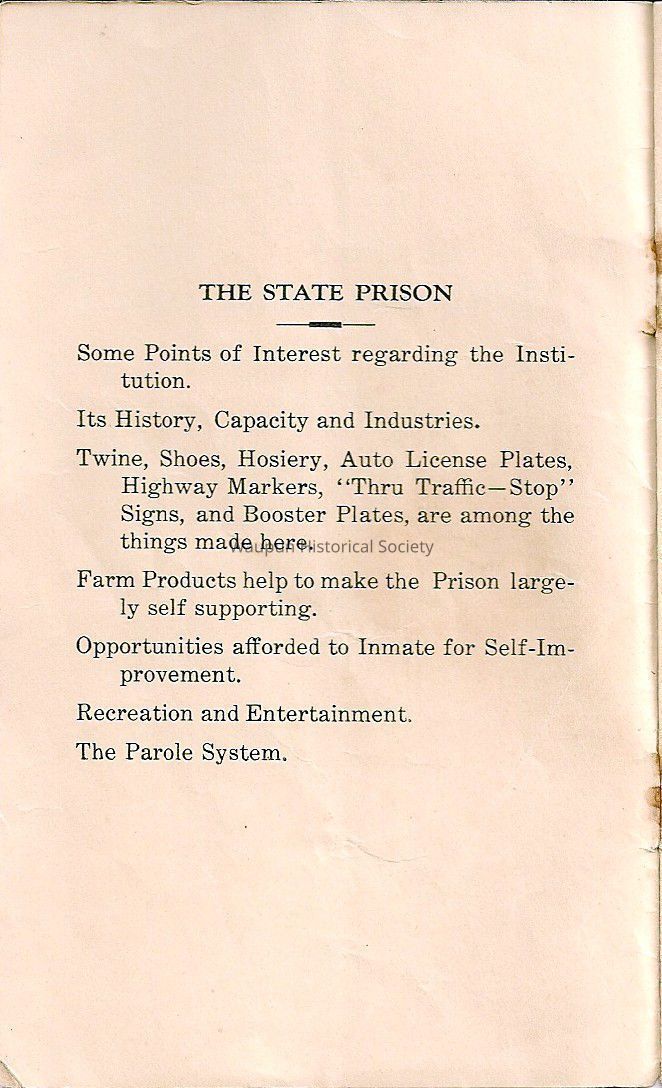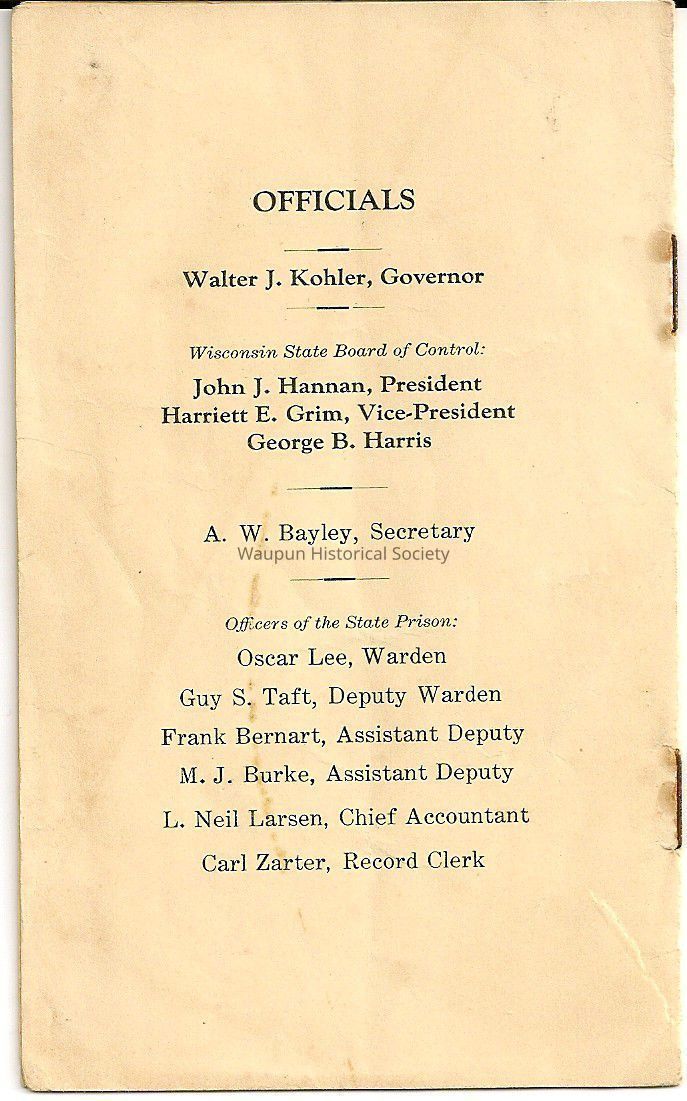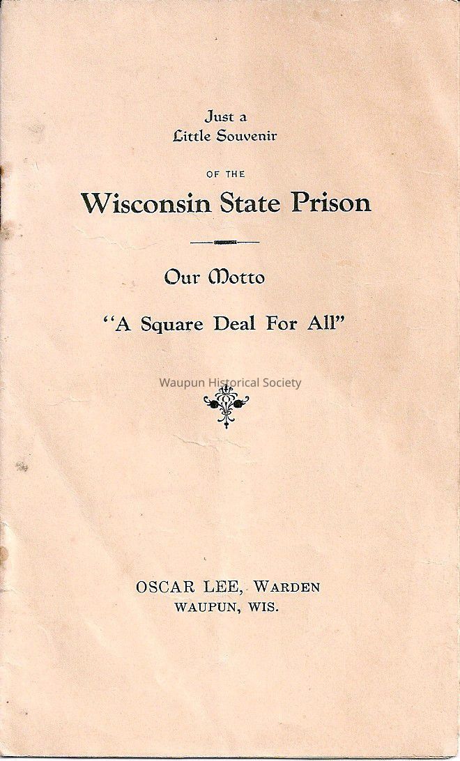 Souvenir Booklet from the Wisconsin State Prison. Not dated, but Oscar Lee is Warden. Women are mentioned working at the prison, so the booklet must be prior to 1932.