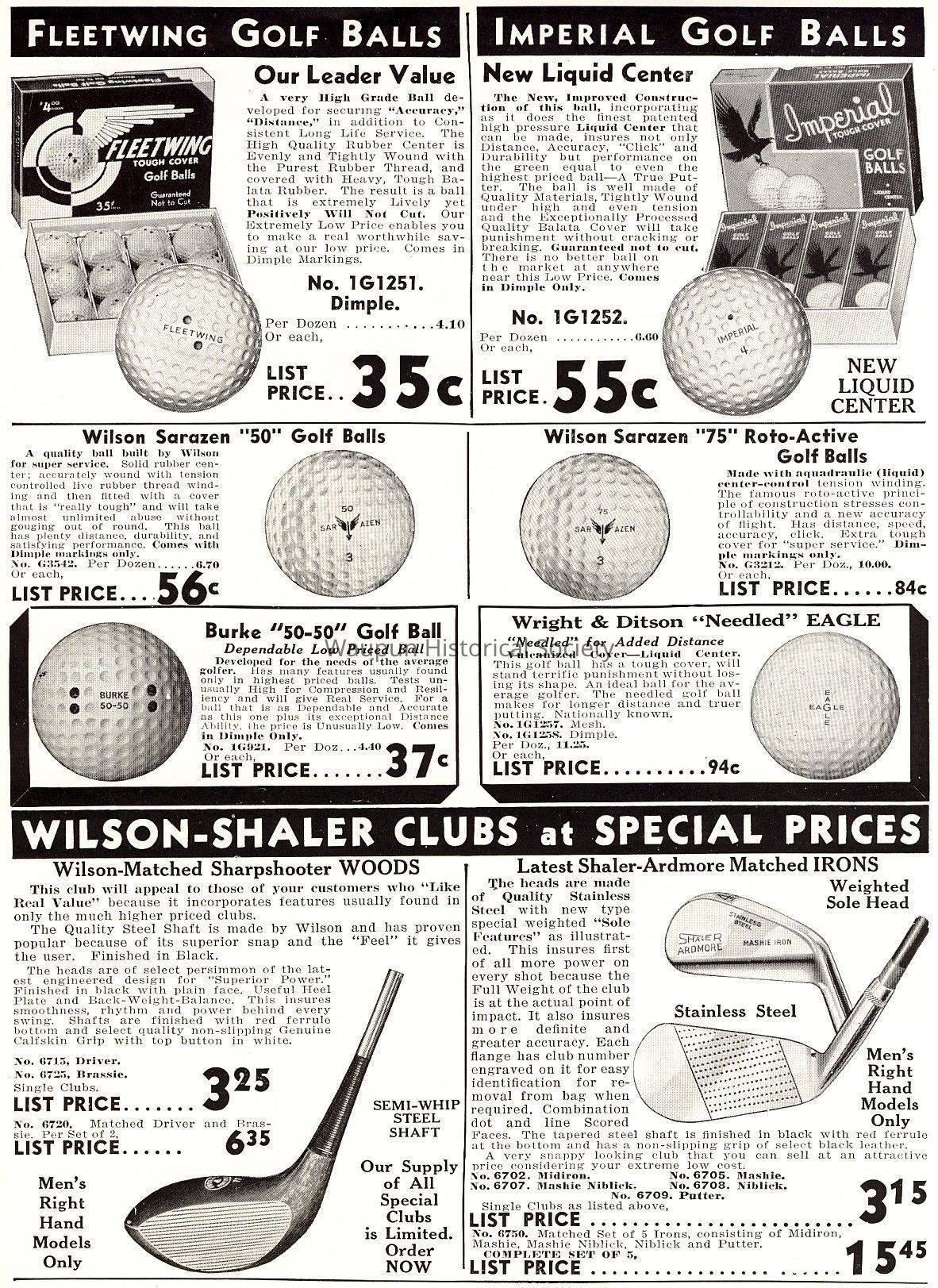Ad for Shaler Golf Clubs. The name of the magazine is unkown, on the margin is written that they are a 1938 ads. The ad is for irons. The price of each iron is $3.15, five for $15.45.Acquisition