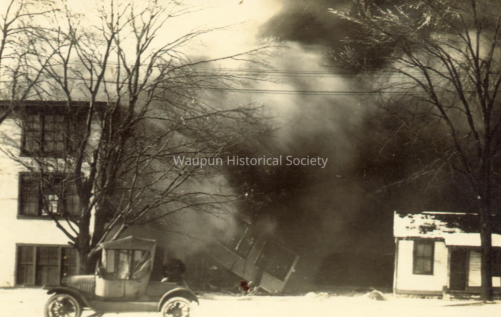 The account goes on to explain the damage done to surrounding buildings. There is also a newspaper account of this fire displayed in the vertical display upstairs in the Waupun Heritage Museum.