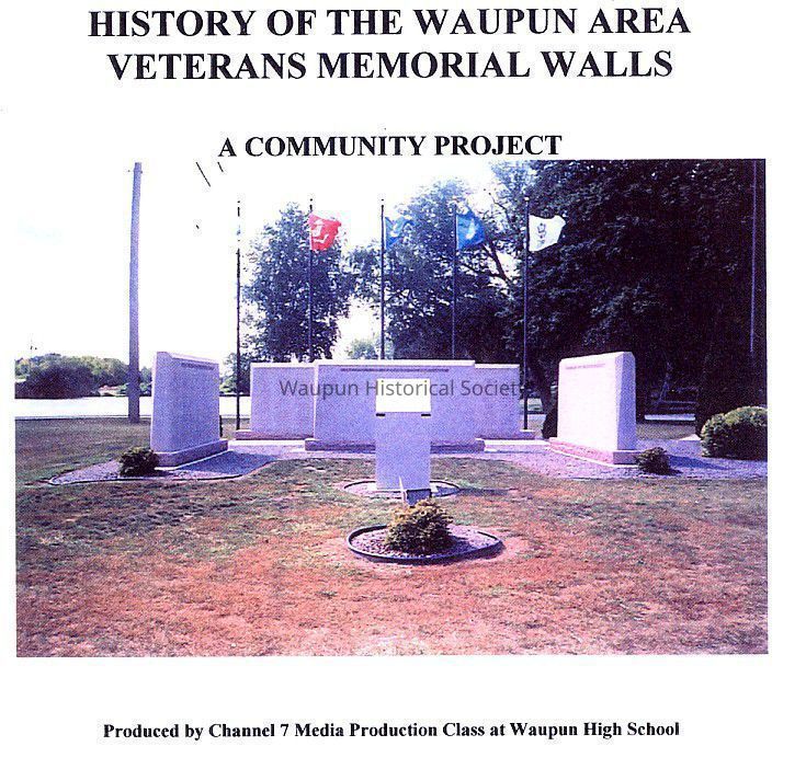 DVD recording "HISTORY OF THE WAUPUN AREA VETERANS MEMORIAL WALLS." This DVD was produced by the Channel 7 Media Class at Waupun High School. It was done circa 2007.Acquisition