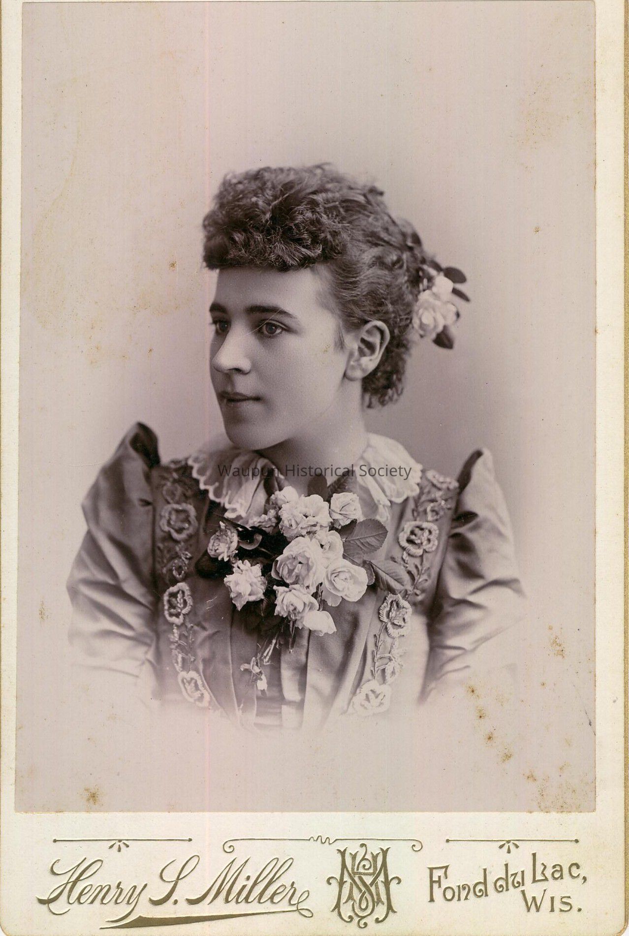 Cabinet Card, Mrs. Bessie Rogers (Mrs. George Rogers). Undated. Photographed by Henry L. Miller in Fond du Lac, Wis. George and Bessie Rogers were the parents of Guy Rogers.