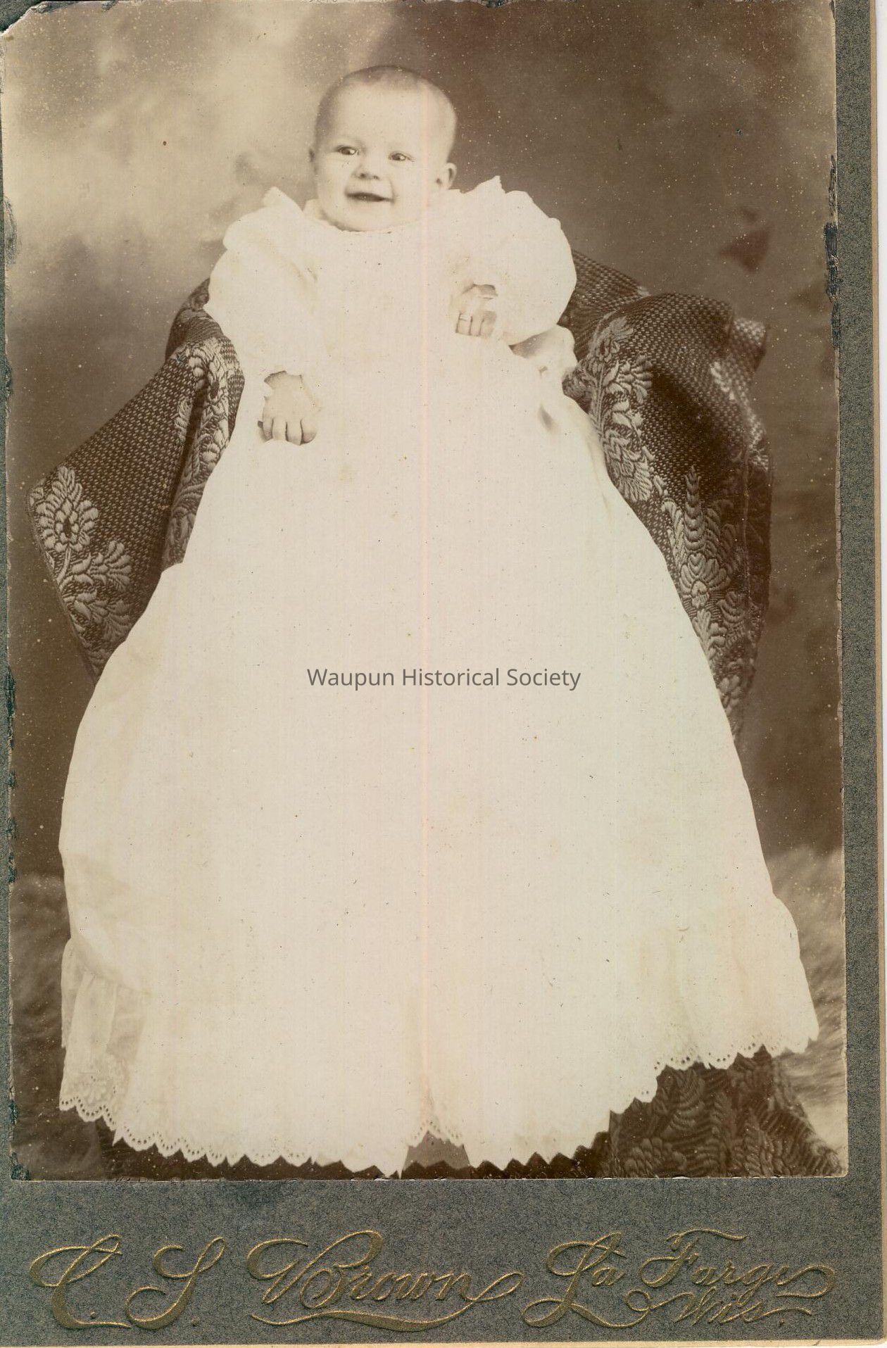 Cabinet Card, Gladys A. Neefe, Aged 15 months. Another photo associated with this is with her older brother, Harley, a few months before. 2001.0043.0013.