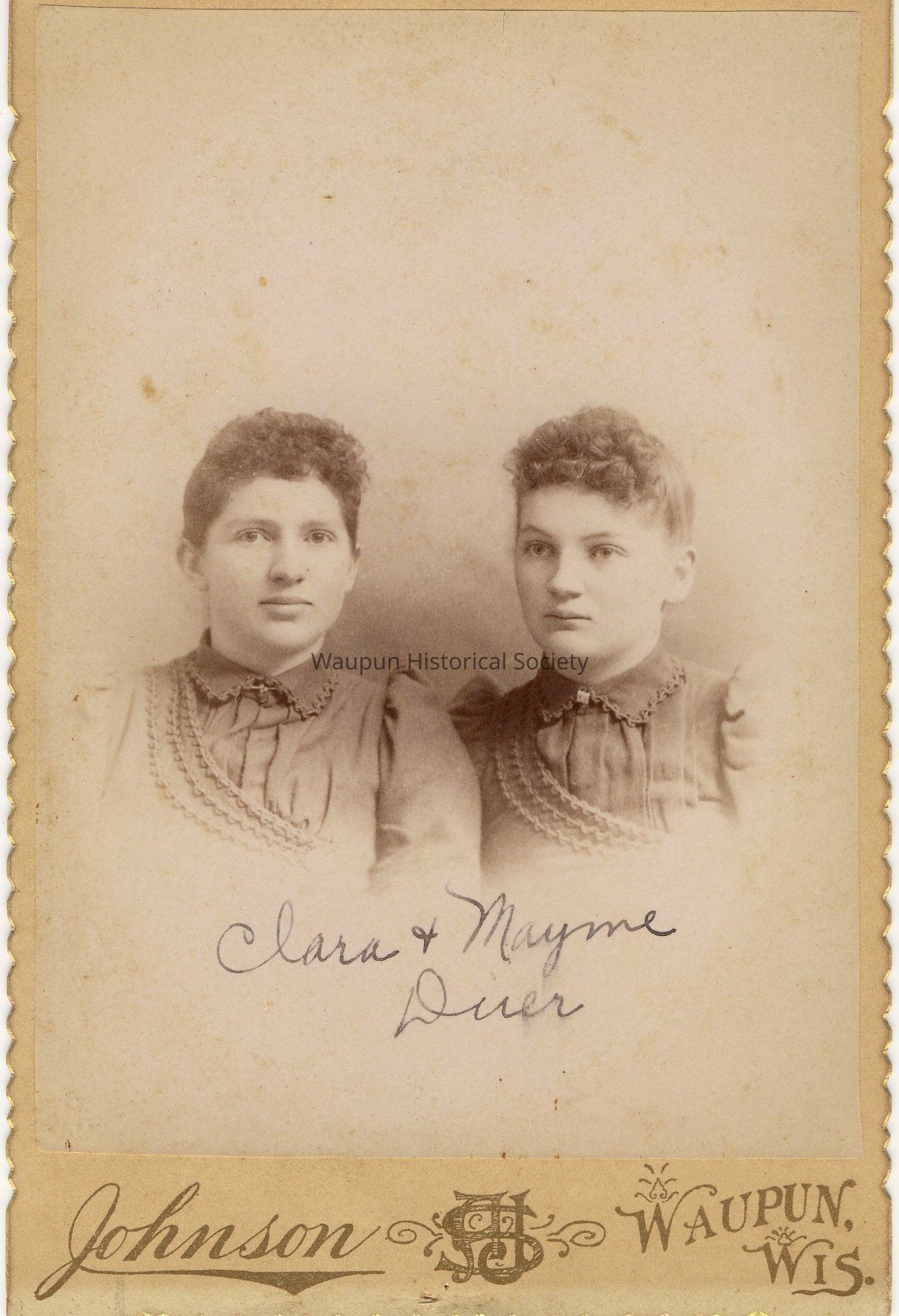Cabinet Card, Johnson, Cabinet Photo Portrait. Undated Cabinet Portrait. Name on the front reads: Clara & Mayme DuerAcquisition