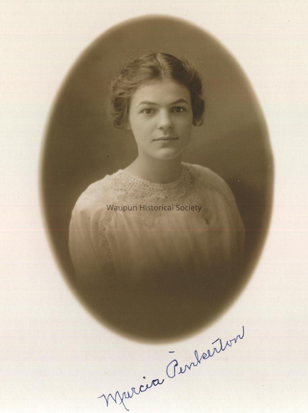 A Marcia Pinkerton graduated from Waupun High School in 1914. The young woman looks very similar to Frank Pinkerton. The picture is found in the Waupun High School 1914 annual.