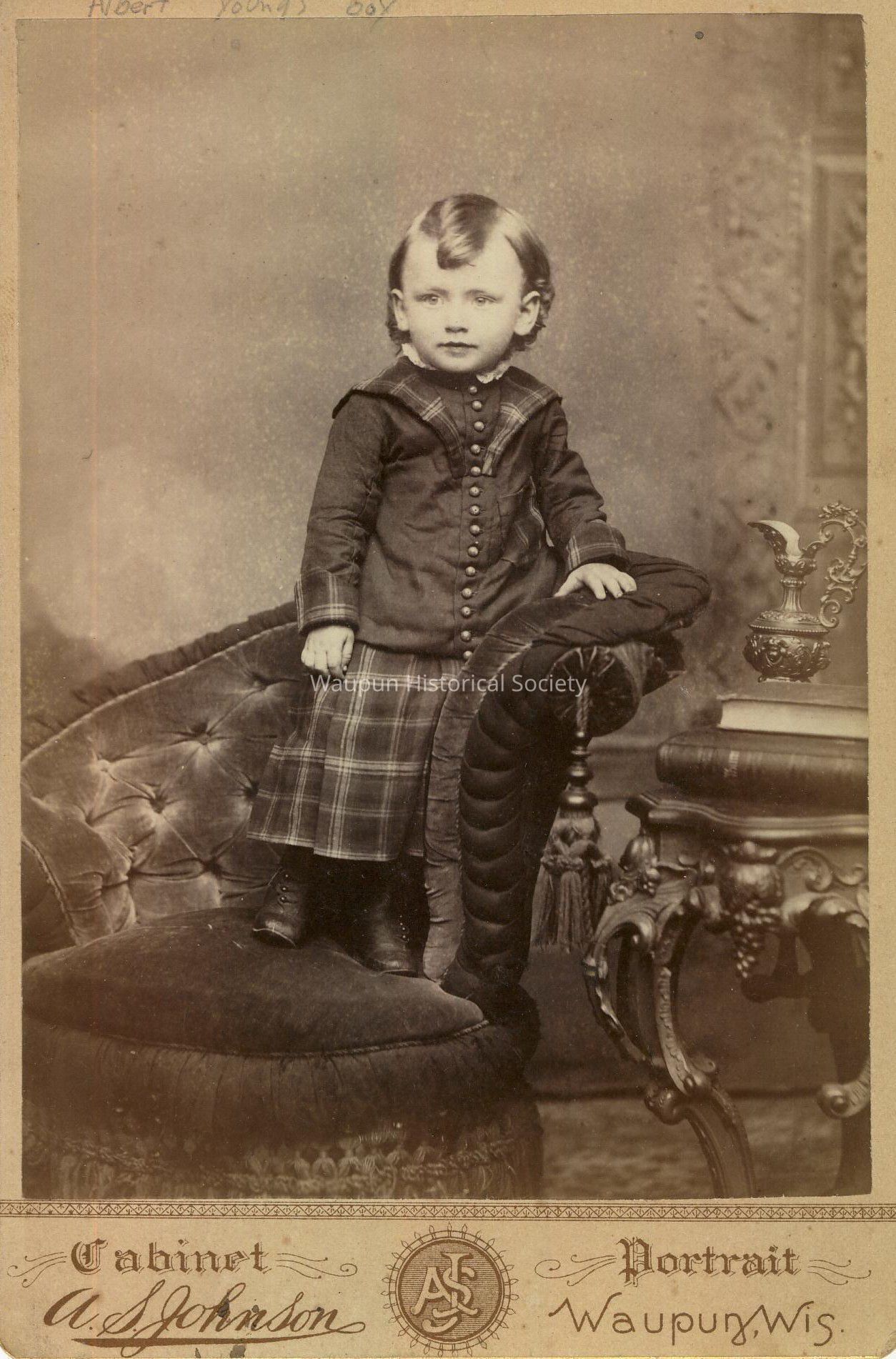 Cabinet Card, Johnson, Photograph of Lee Young, Albert Young's boy. In the 1898 Waupun City Directory, there is a Sarah Young listed as a widow at 825 Main Street.