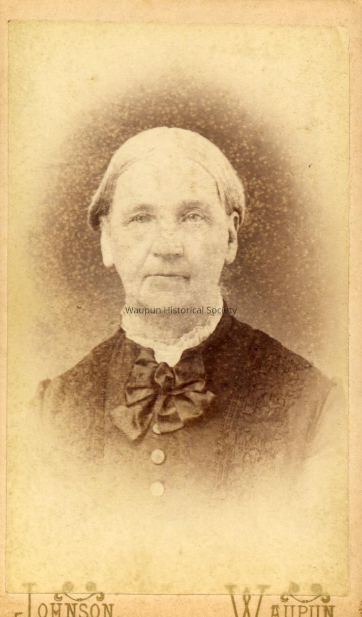 Cabinet Card, Johnson, Small A small photo with Mrs. McCracken, age 63 years written in pencil on the back. It was taken by Johnson Photographers in Waupun.