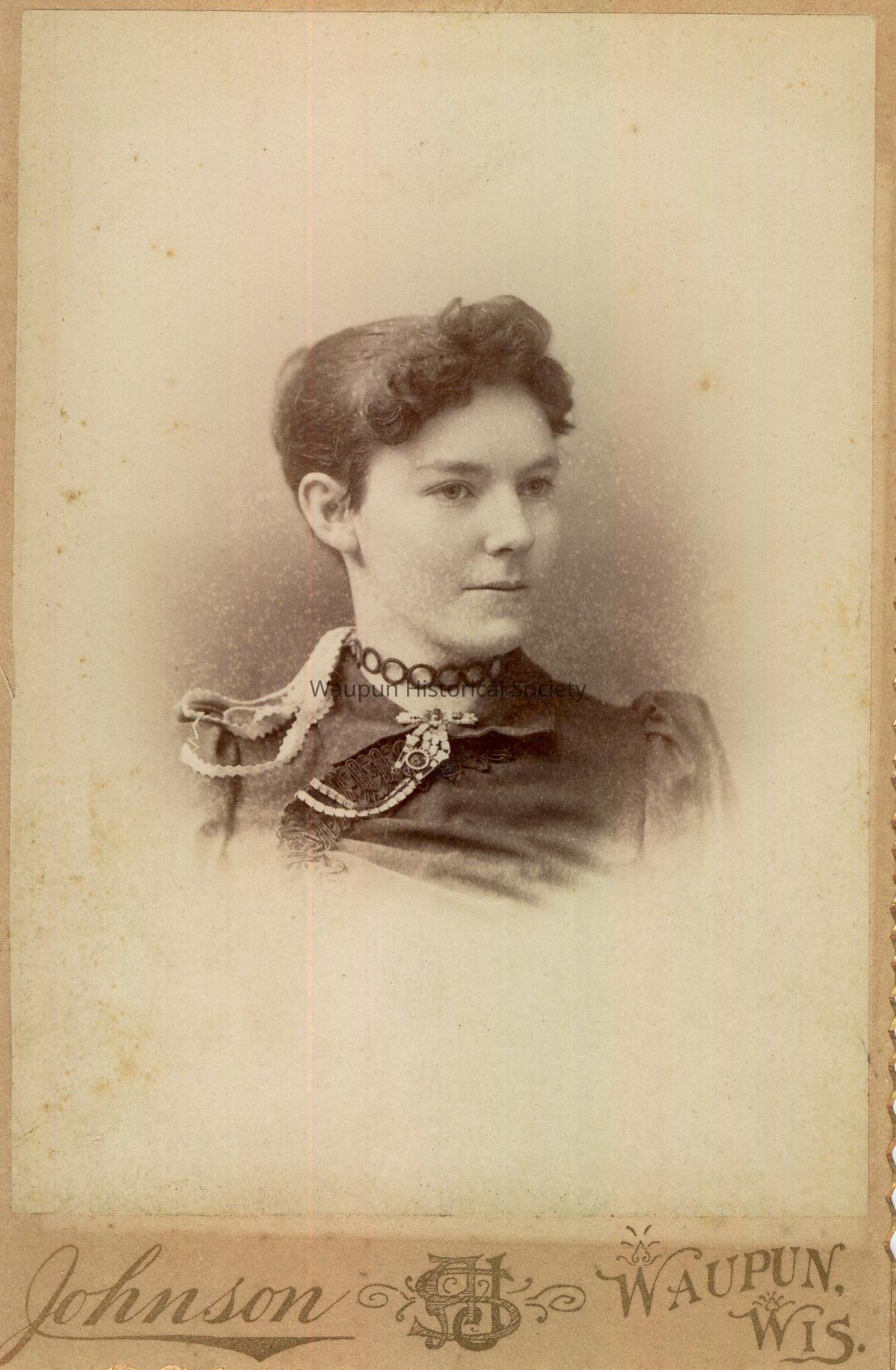Cabinet Card, Johnson, Photograph of an unknown woman, probably late nineteenth century. Taken by Stanley Johnson, Waupun, Wis.