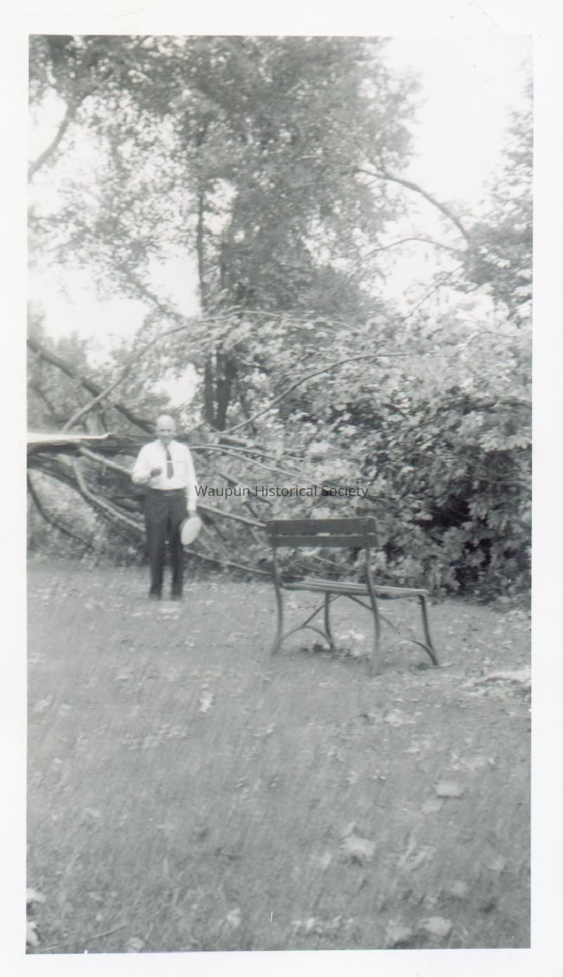 1953 Tornado. These photos were on loan from Gene and Betty Buchholz. They were returned to them after they were scanned. The only copies the Waupun Historical Society has are the electronic versions on disk. Caption on the back indicates "August 1, 1953 Helmuth H. Buchholz Dodge Park Waupun WI after 1953 tornado.Acquisition