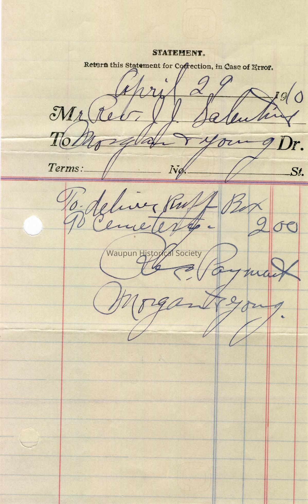 Mr. Rev. J. J. Salentine to Morgan & Young Dr.