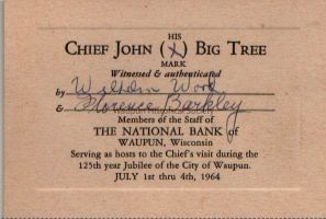 Chief John Big Tree, National Bank Card, 1964
