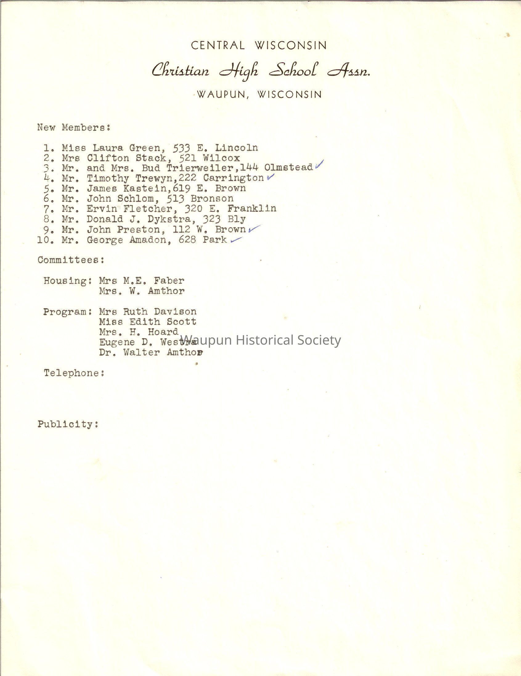 Christian High School Assn, WHS New MembersEntry/Object ID