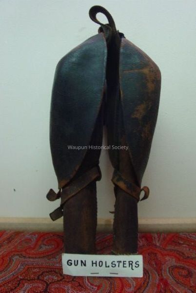 Civil War Collection. Pistol Holsters designed to be placed over the saddle Horn. Inside each flap is a tin case for 5 cartridges.Acquisition
