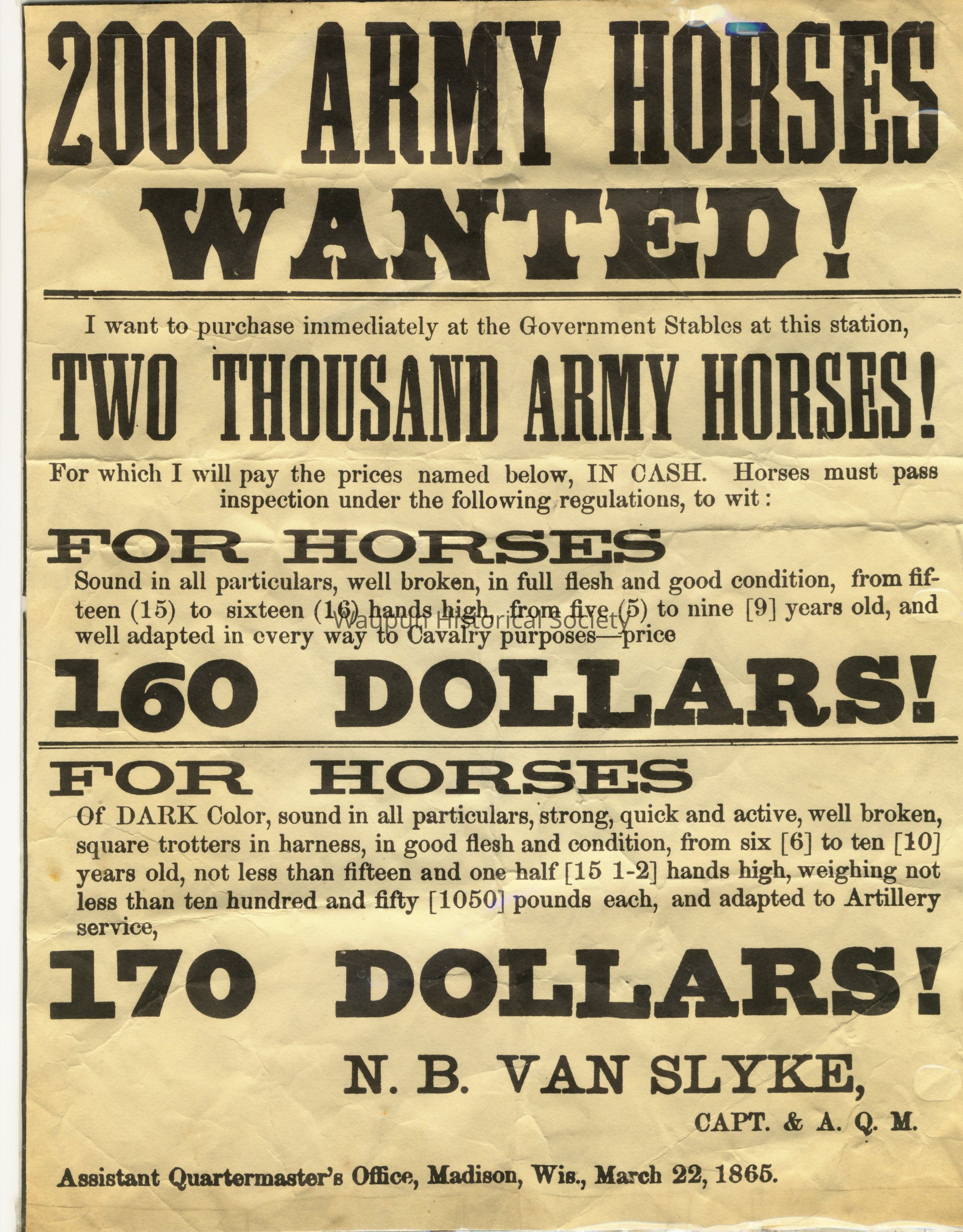 Poster, 2000 Army Horses Wanted, Civil WarEntry/Object ID