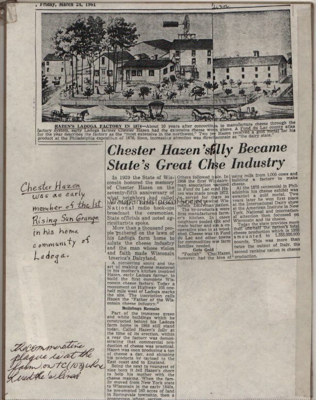 Clipping, Hazen Cheese Factory