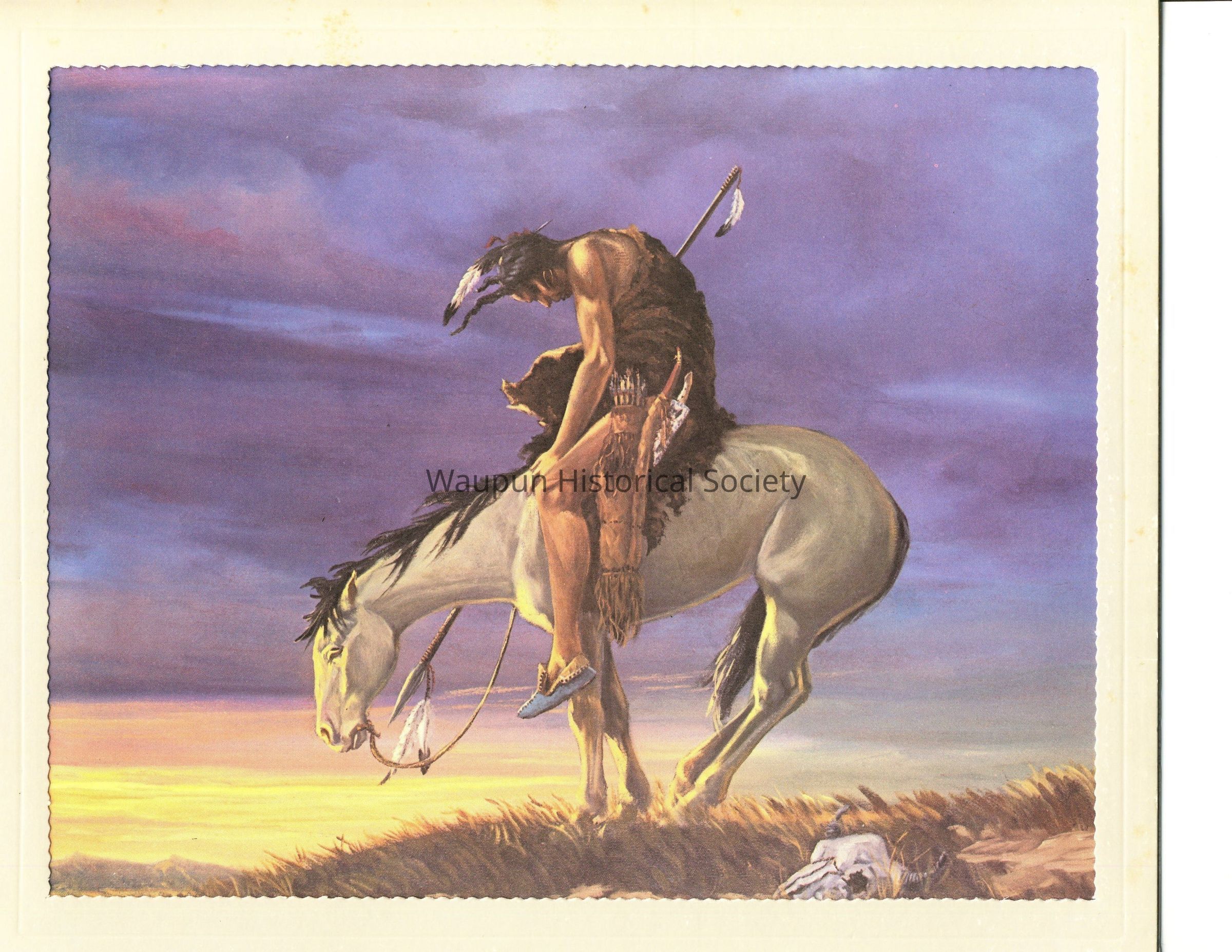 8 1/2 x 10 1/2 color painted photo of End of the Trail in a light colored cardboard picture frame from the private collection of Michael J. Meketi (American 1918- ) No.80lAcquisition