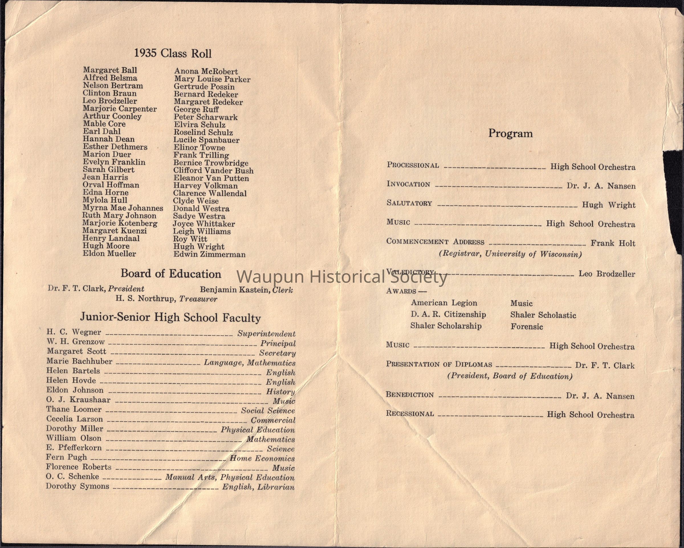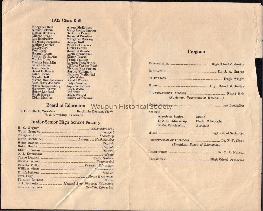 Commencement class of (1935) Waupun High SchoolEntry/Object ID