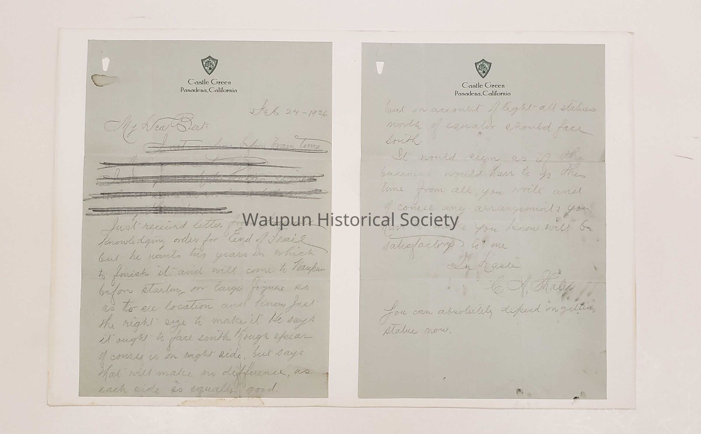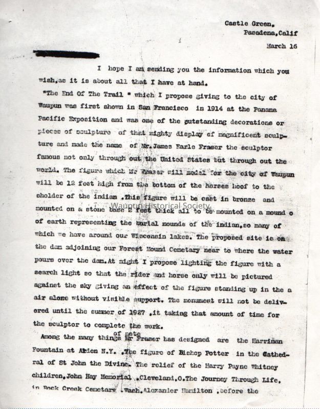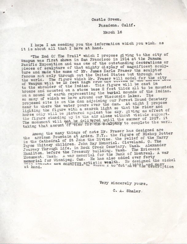 Letters, Shaler, End of the Trail, 1926