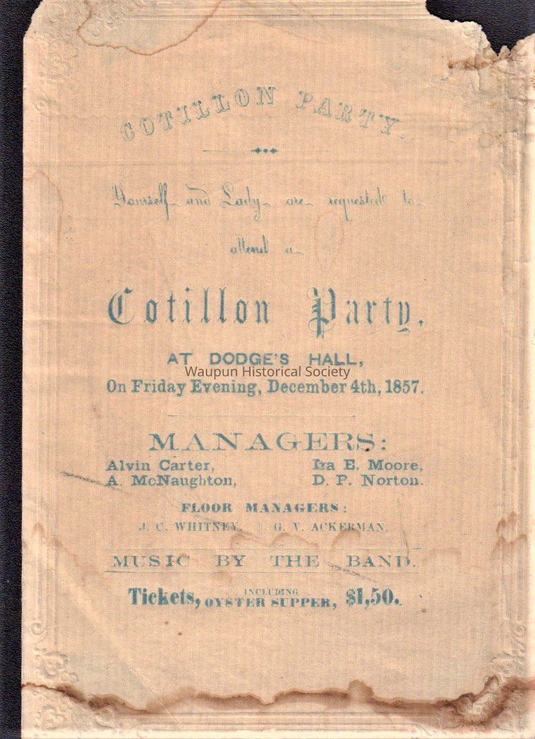 Cotillon Party at Dodge's Hall (Feb 4 1857)