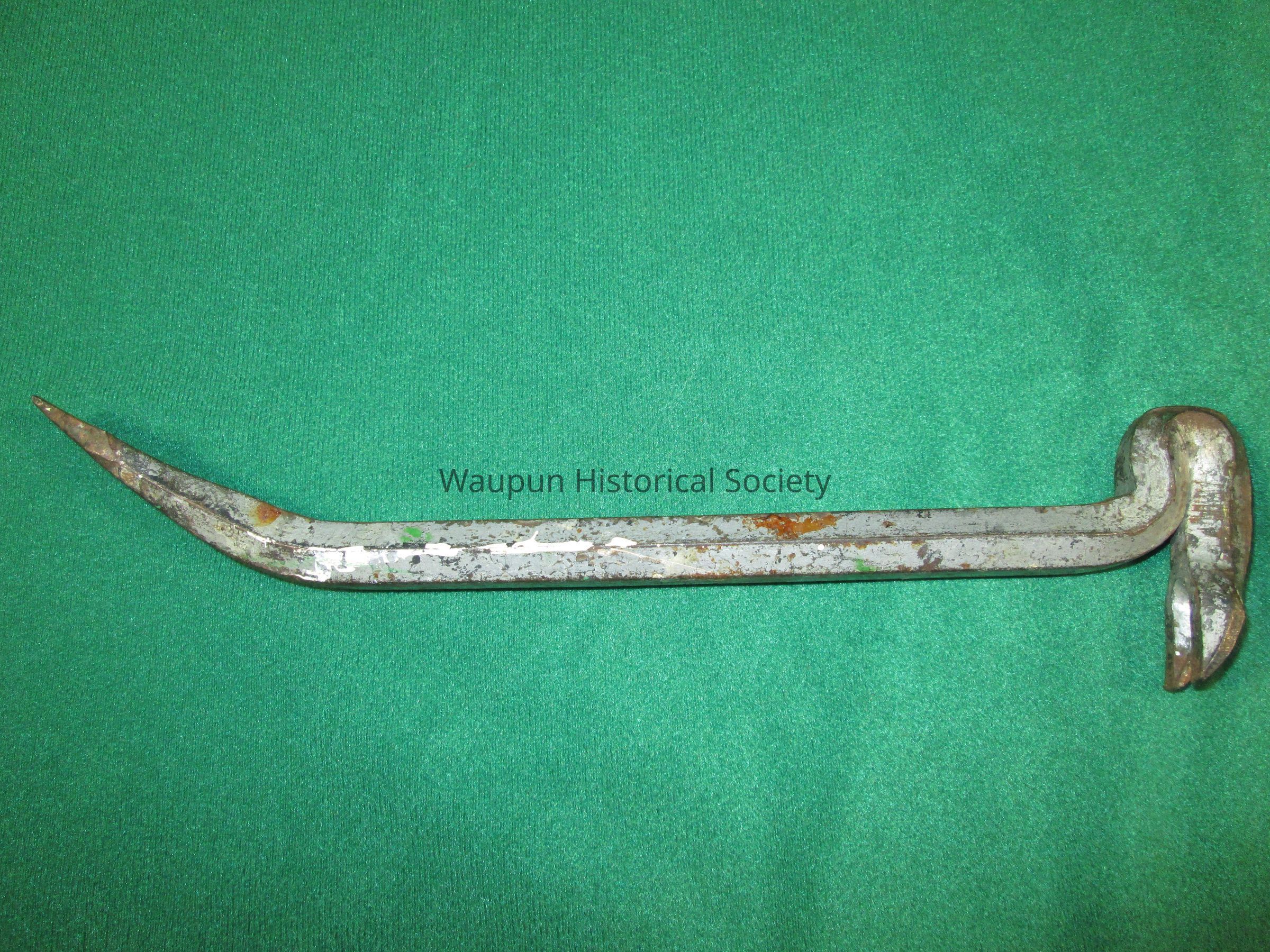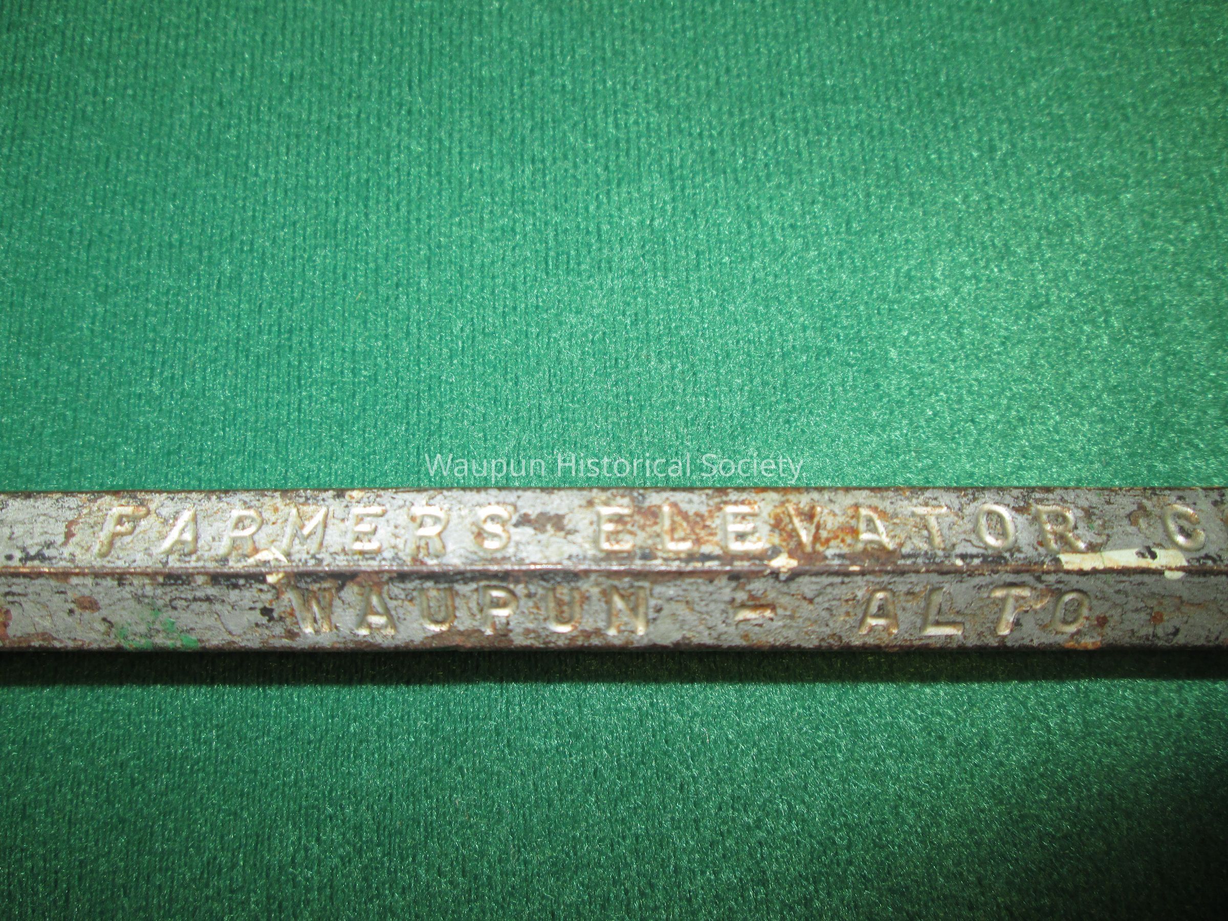 Small crowbar advertising Farmers Elevator Co., Waupun, Alto. It is 9 1/2" in length and made of metal.Acquisition