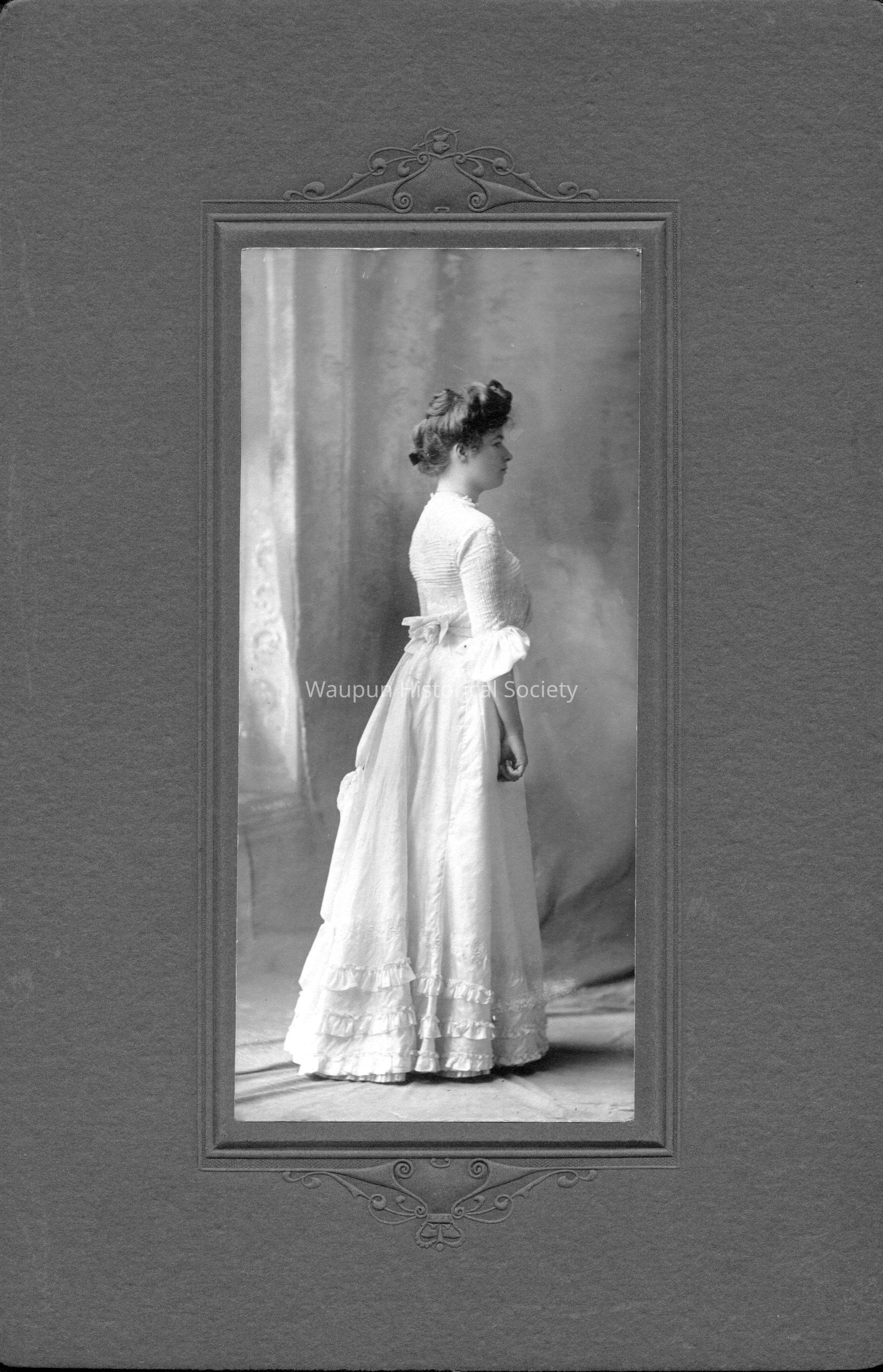 Portrait, Librarian Clara Lindsley. Photo was taken October 7, 1902. It shows Clara Lindsley who was a long time librarian at our Waupun Library.