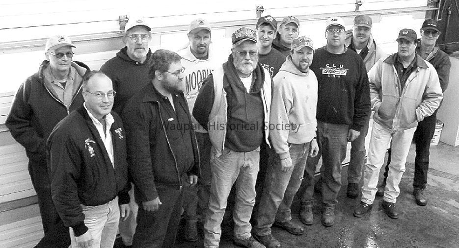 Public Works Employees. This photo was emailed by the Monday Marketeer. It appeared in their "Faces & Places" of Feburary 2005. Caption under the photo indicates: Front row, from left: Dick Flynn, Superintendent, Lloyed Dykstra, Cal Bos, Curt Fenrich, Tom Van Hierden and Chuck Landall. Back row from left: Dennis Harmsen, Dave Bresser, Jerry Pluim, Jeff Daane, Dan Ferch, Ed Mueller and Gary Chase. Missing: Laurie Jo Gallagher and Todd Fredrickson.