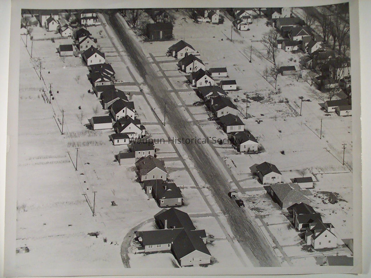 Waupun 1950's aerial photos. Given by John Kirkpatrick who was the editor of the Waupun Leader News, for many years. Caption on the back indicates Division Street facing North, shows Christian Home. (Winter photo)Acquisition