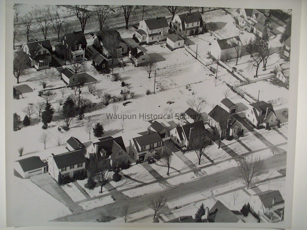Waupun 1950's aerial photos. Given by John Kirkpatrick who was the editor of the Waupun Leader News, for many years. Caption on the back indicates South Watertown Street and South Grove Street.Acquisition