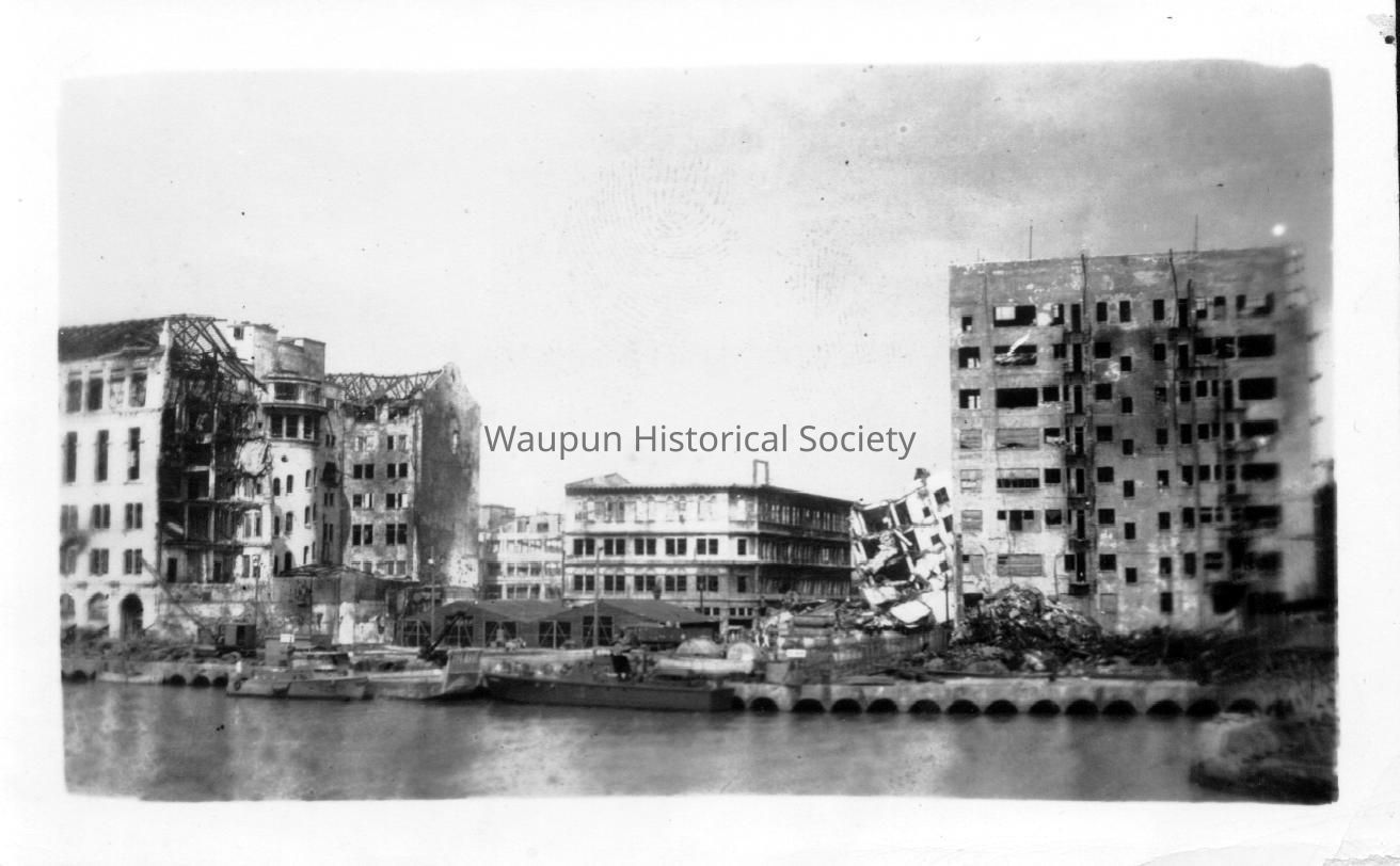 Mr. Walter Riel was a Sergeant with the 38th Photo Reconnaissance Squadron, 13th Air Force from 1942-1946. The Riel Collection is a series of photos that were given to the Waupun Historical Society by Mr. Riel. Bombed buildings in the Philippines.Acquisition