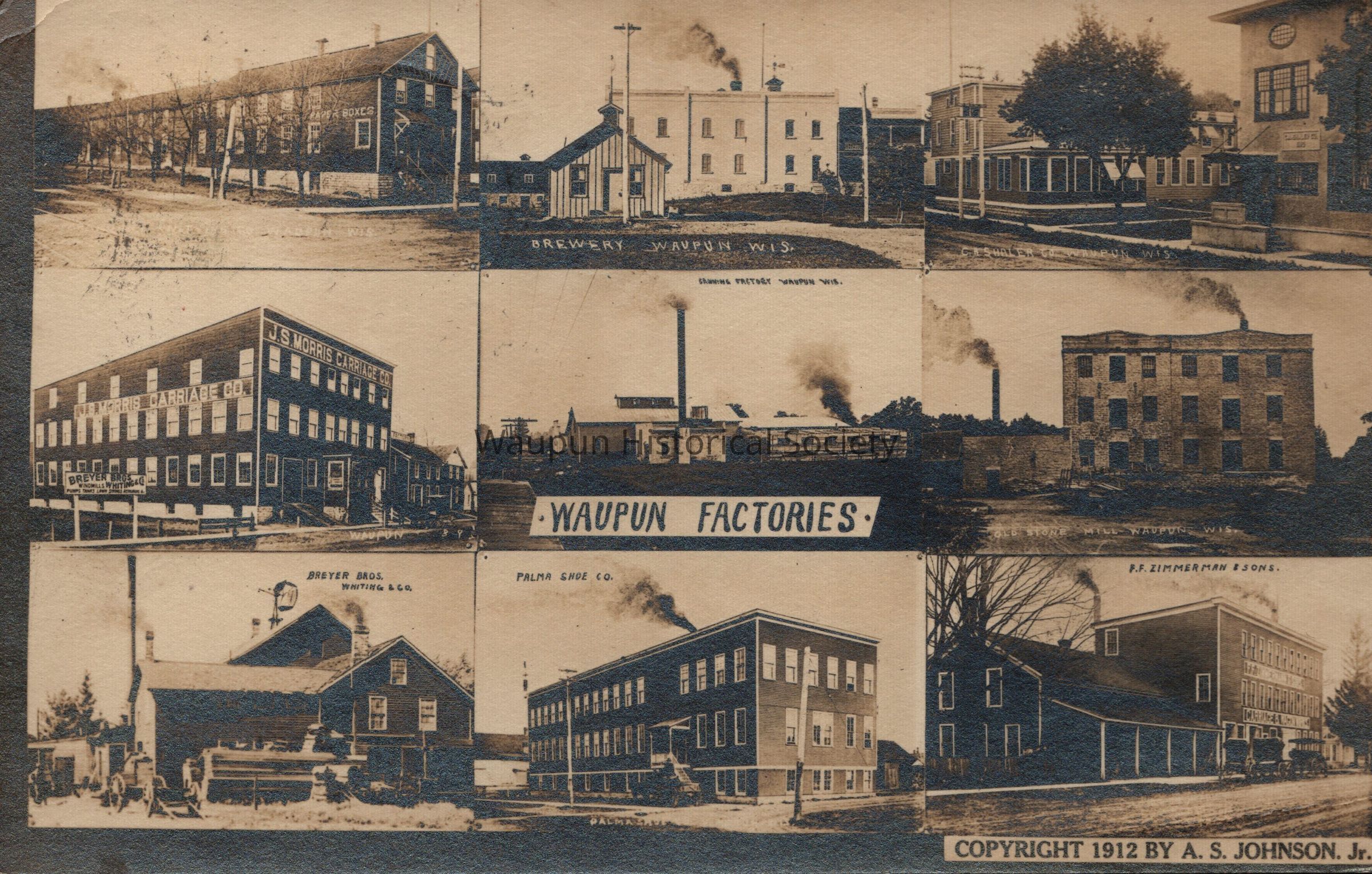 Postcard, Waupun Factories, A. S. Johnson, Jr., 1912