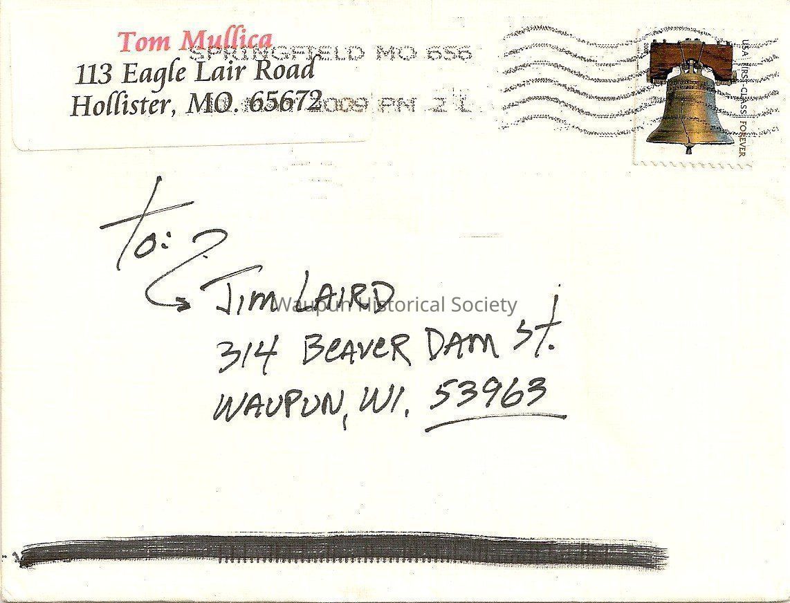 Card, Note, Tom Mullica to James Laird, 2009Entry/Object ID