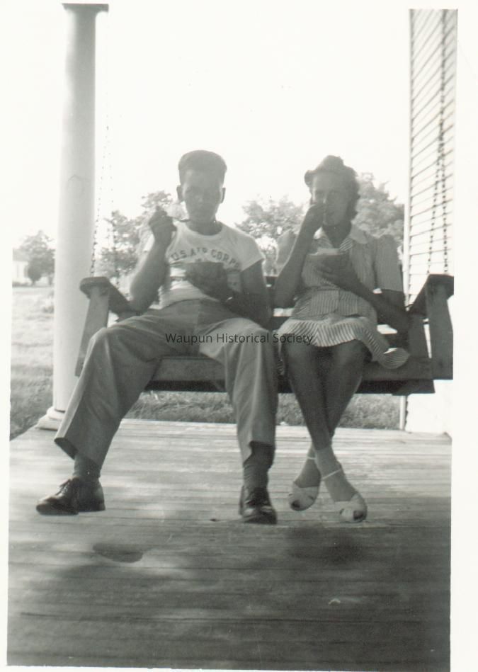 Mr. Walter Riel was a Sergeant with the 38th Photo Reconnaissance Squadron, 13th Air Force from 1942-1946. The Riel Collection is a series of photos that were given to the Waupun Historical Society by Mr. Riel. This photo shows Walter Riel & his wife relaxing.Acquisition