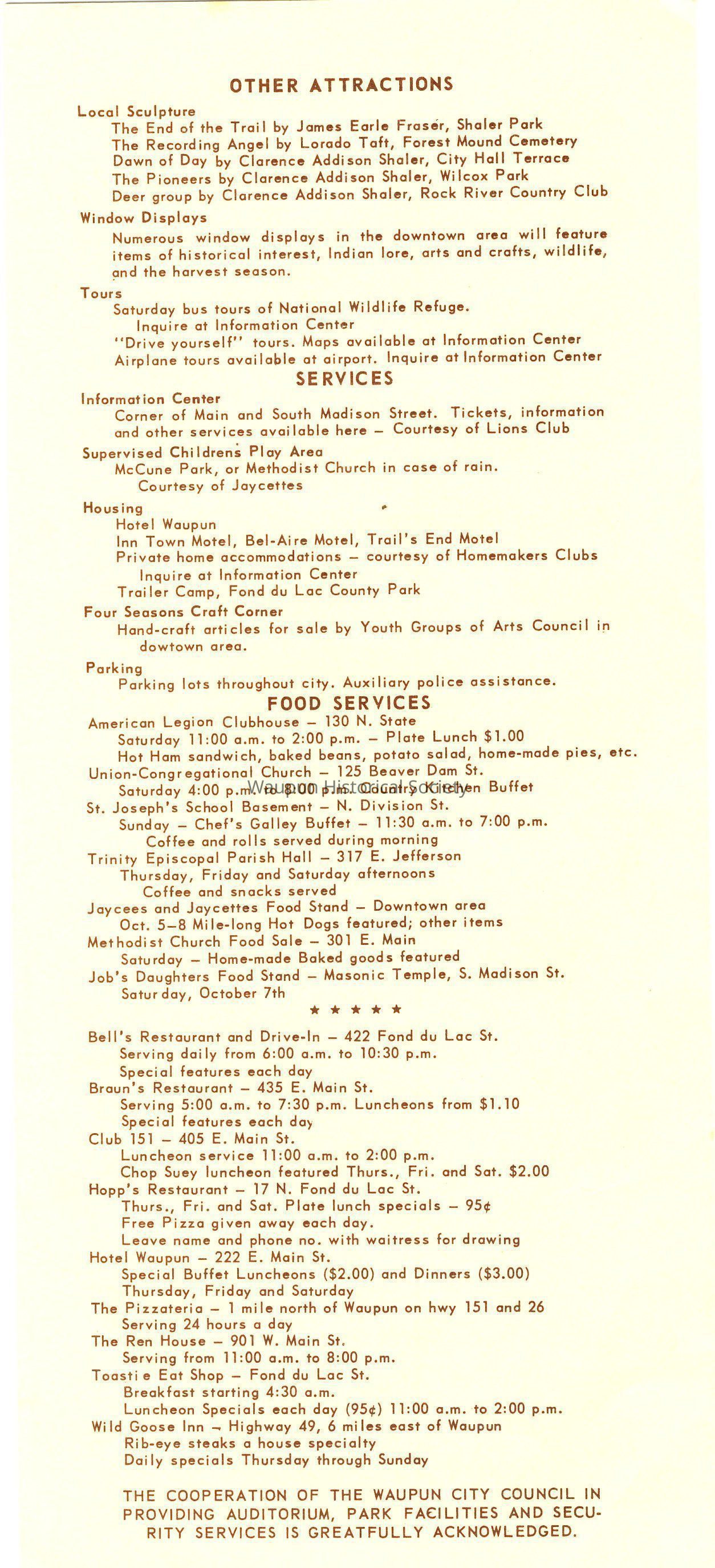 FOR INFORMATION : Write - Chamber of Commerce, City Hall, Waupun, Wisconsin, Phone - 324-3491.