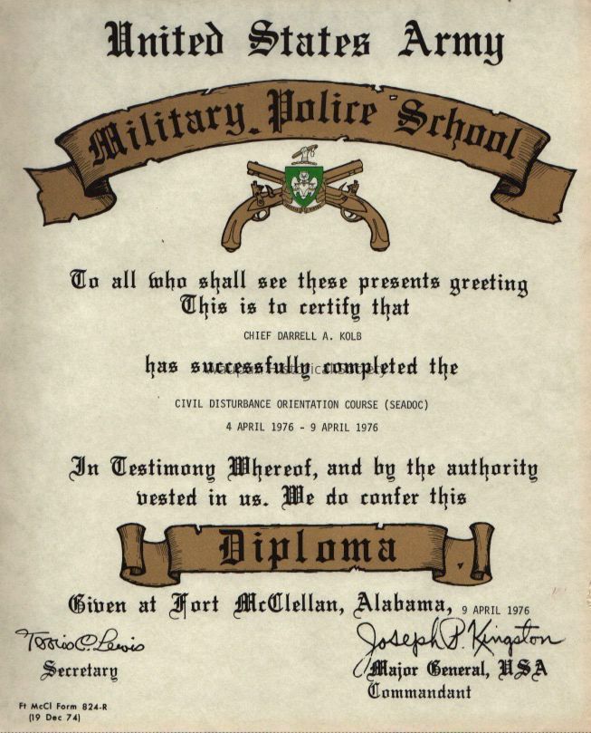 Diploma, United States Army, Military Police, Darrell Kolb