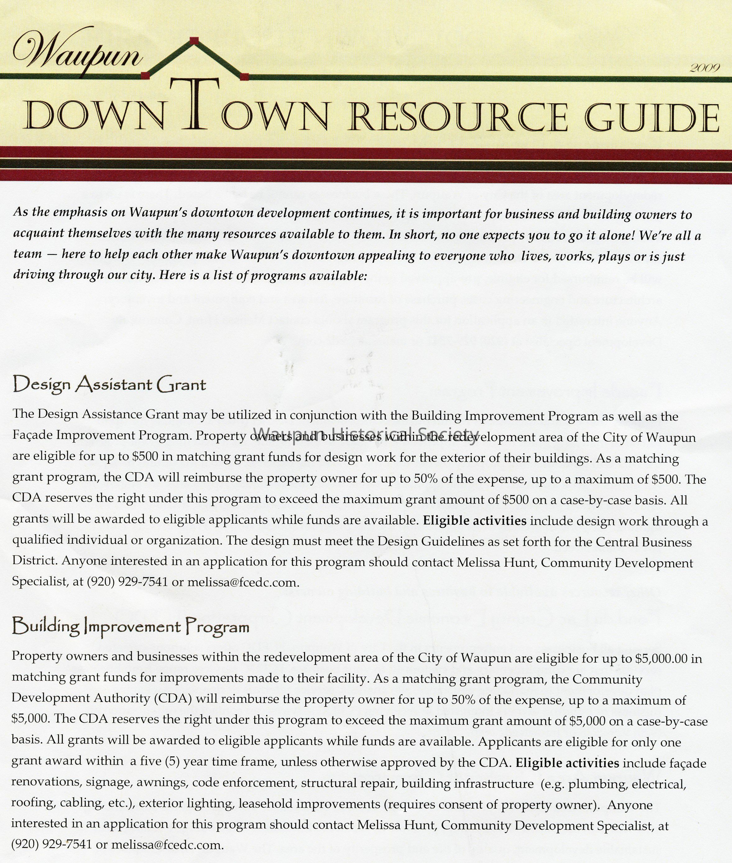 As the emphasis on Waupun's downtown development continues, it is important for business and building owners to acquaint themselves with the many resources available to them. In short, no one expects you to go it alone! We're all a team — here to help each other make Waupun's downtown appealing to everyone who lives, works, plays or is just driving through our city. Here is a list of programs available: