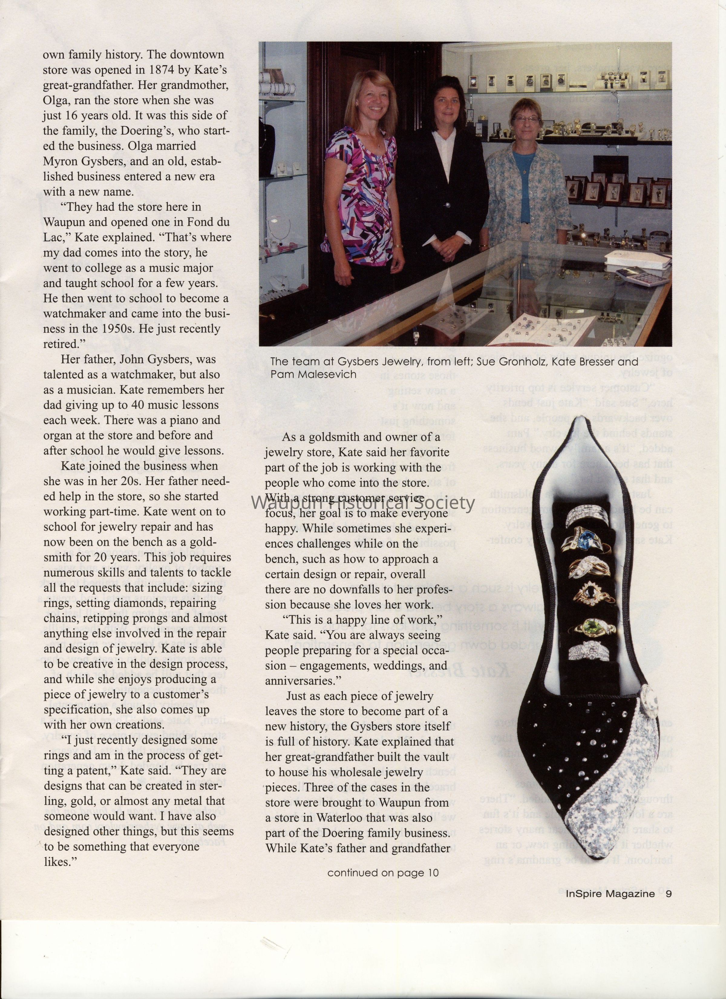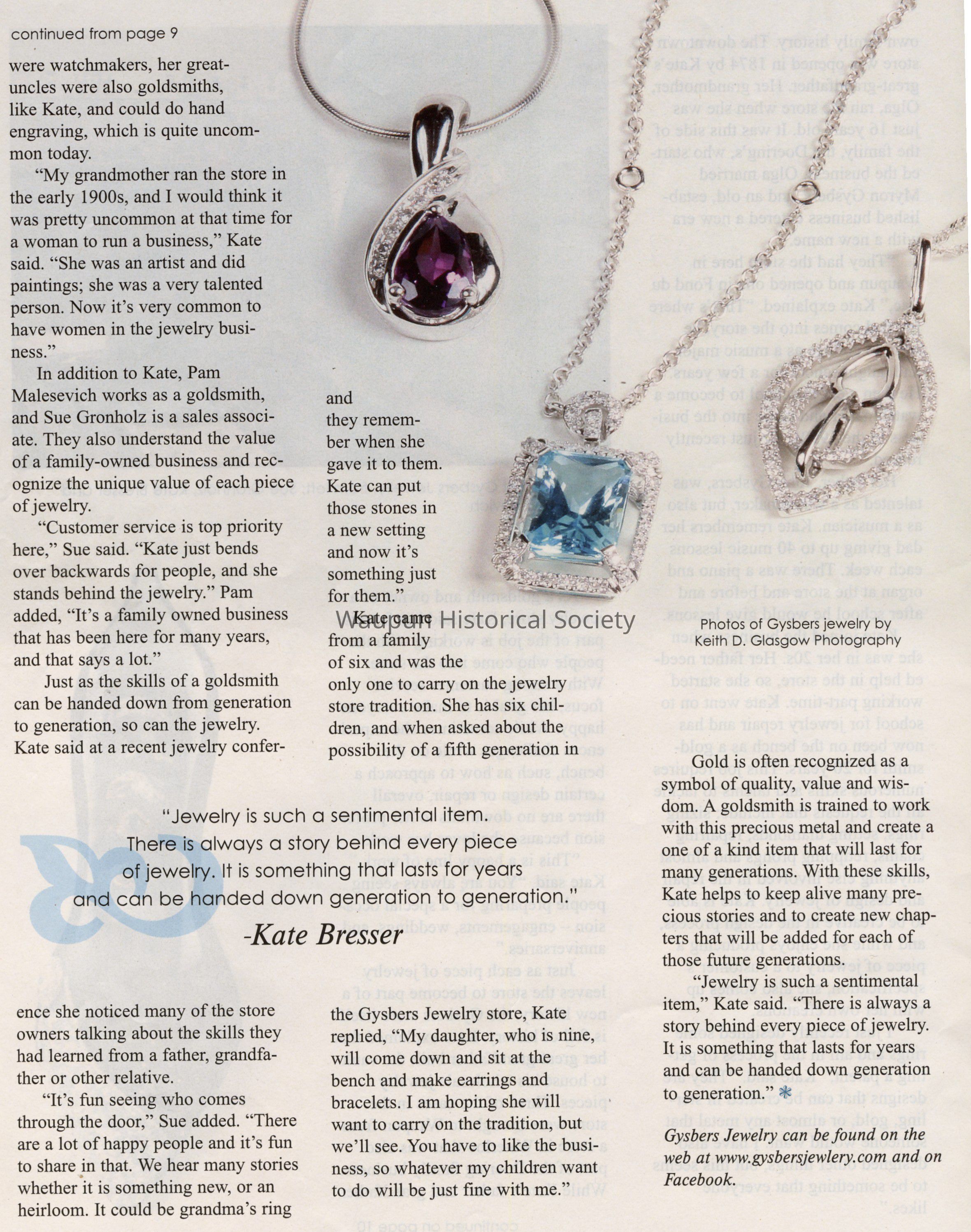 Caption In Photo:[Kate Bresser carries on the traditon as sthe fourth generation at Gysbers Jewelry.]Acquisition