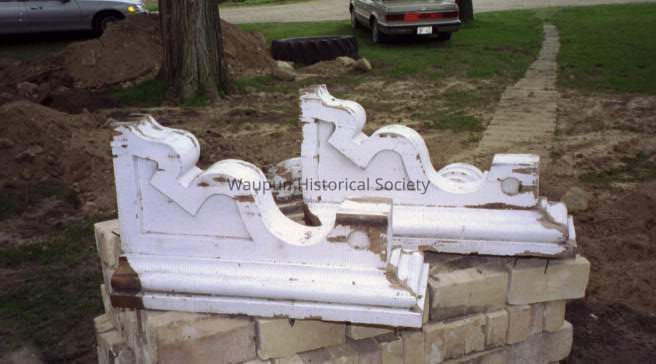 Photo Collection of the Ferguson Home: This photo shows the de-construction of the Ferguson home, Town of Chester, Dodge County, Wisconsin (on County MM just south of Waupun). The wooden portion of the home was built by David Ferguson, between April and winter of 1850, while the brick addition was added to the south end of the original home in 1860.