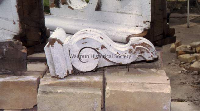 Photo Collection of the Ferguson Home: This photo shows the de-construction of the Ferguson home, Town of Chester, Dodge County, Wisconsin (on County MM just south of Waupun). The wooden portion of the home was built by David Ferguson, between April and winter of 1850, while the brick addition was added to the south end of the original home in 1860.