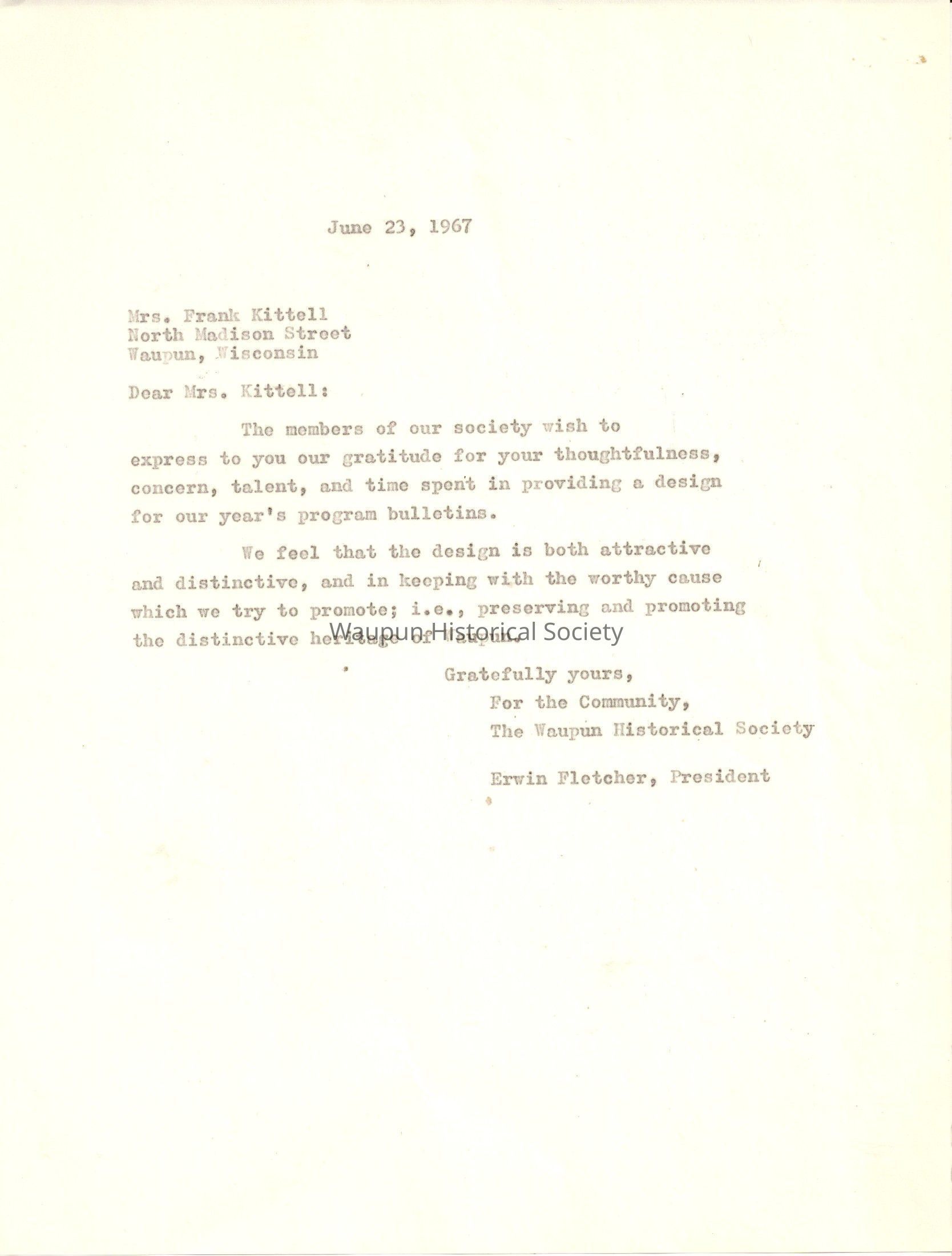 We feel that the design is both attractive and distinctive, and in keeping with the worthy cause which we try to promote; i.e. preserving and promoting the distinctive heritage of Waupun.