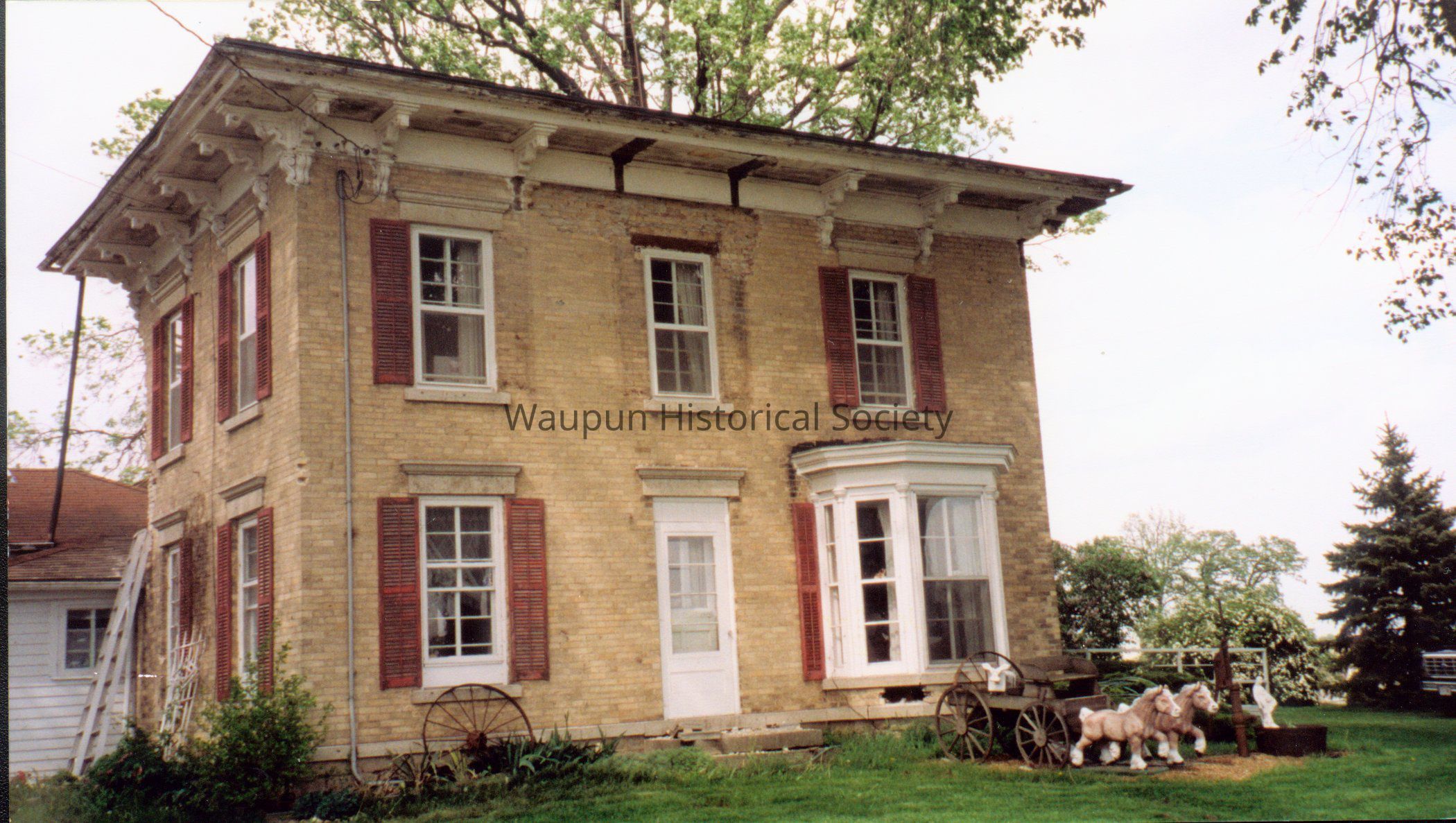 Photo Collection of the Ferguson Home: This photo shows the de-construction of the Ferguson home, Town of Chester, Dodge County, Wisconsin (on County MM just south of Waupun). The wooden portion of the home was built by David Ferguson, between April and winter of 1850, while the brick addition was added to the south end of the original home in 1860.