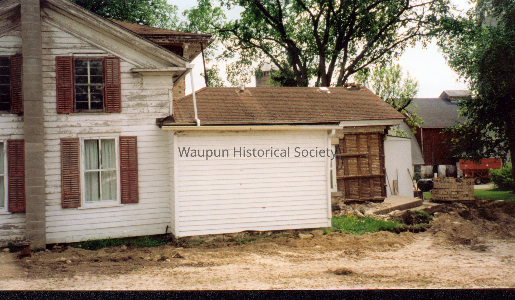Photo Collection of the Ferguson Home: This photo shows the de-construction of the Ferguson home, Town of Chester, Dodge County, Wisconsin (on County MM just south of Waupun). The wooden portion of the home was built by David Ferguson, between April and winter of 1850, while the brick addition was added to the south end of the original home in 1860.
