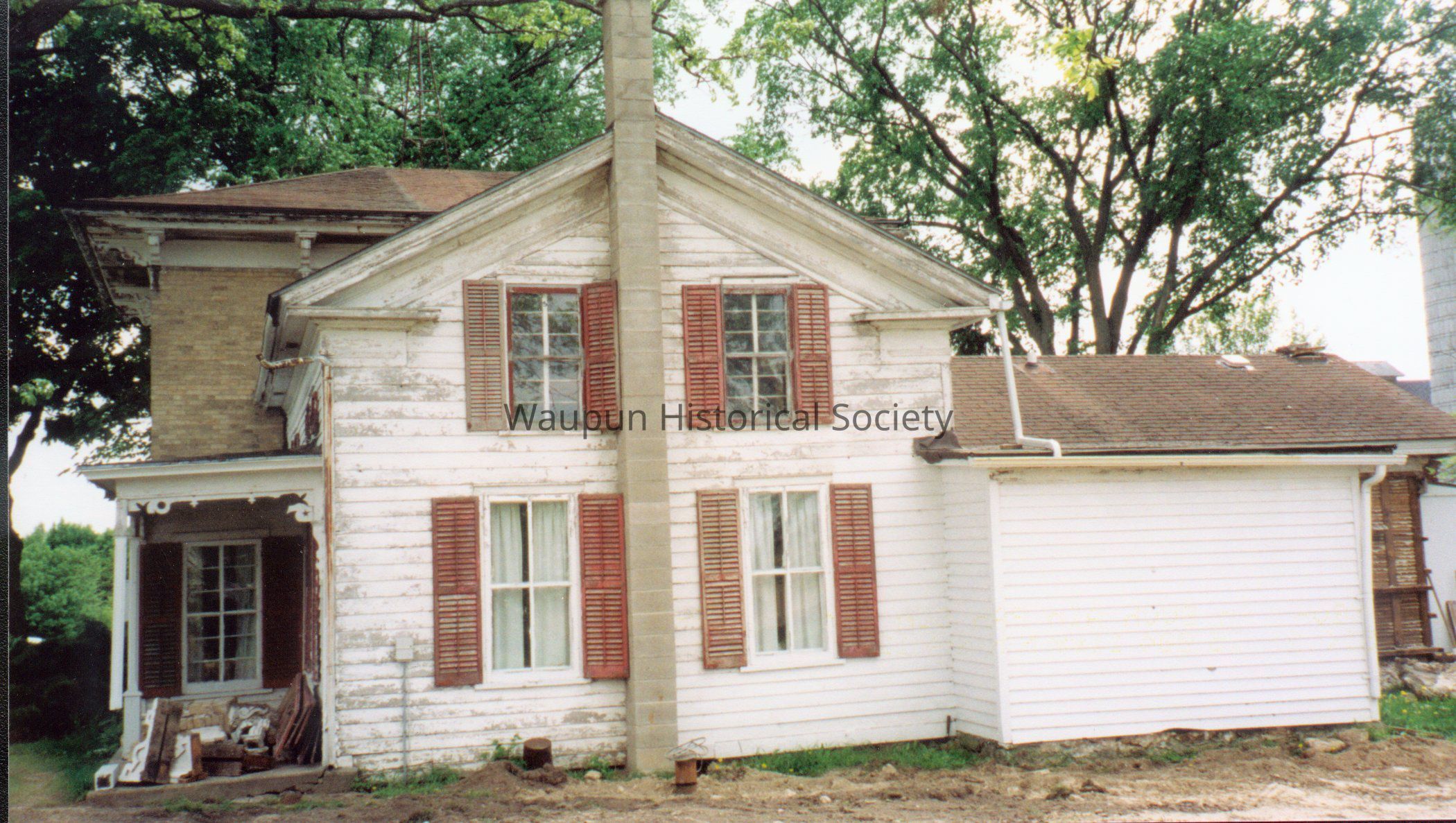 Photo Collection of the Ferguson Home: This photo shows the de-construction of the Ferguson home, Town of Chester, Dodge County, Wisconsin (on County MM just south of Waupun). The wooden portion of the home was built by David Ferguson, between April and winter of 1850, while the brick addition was added to the south end of the original home in 1860.