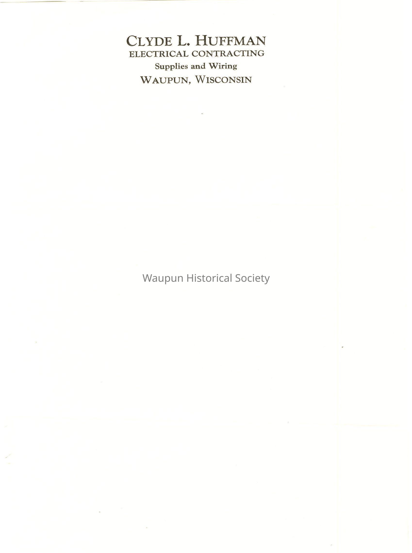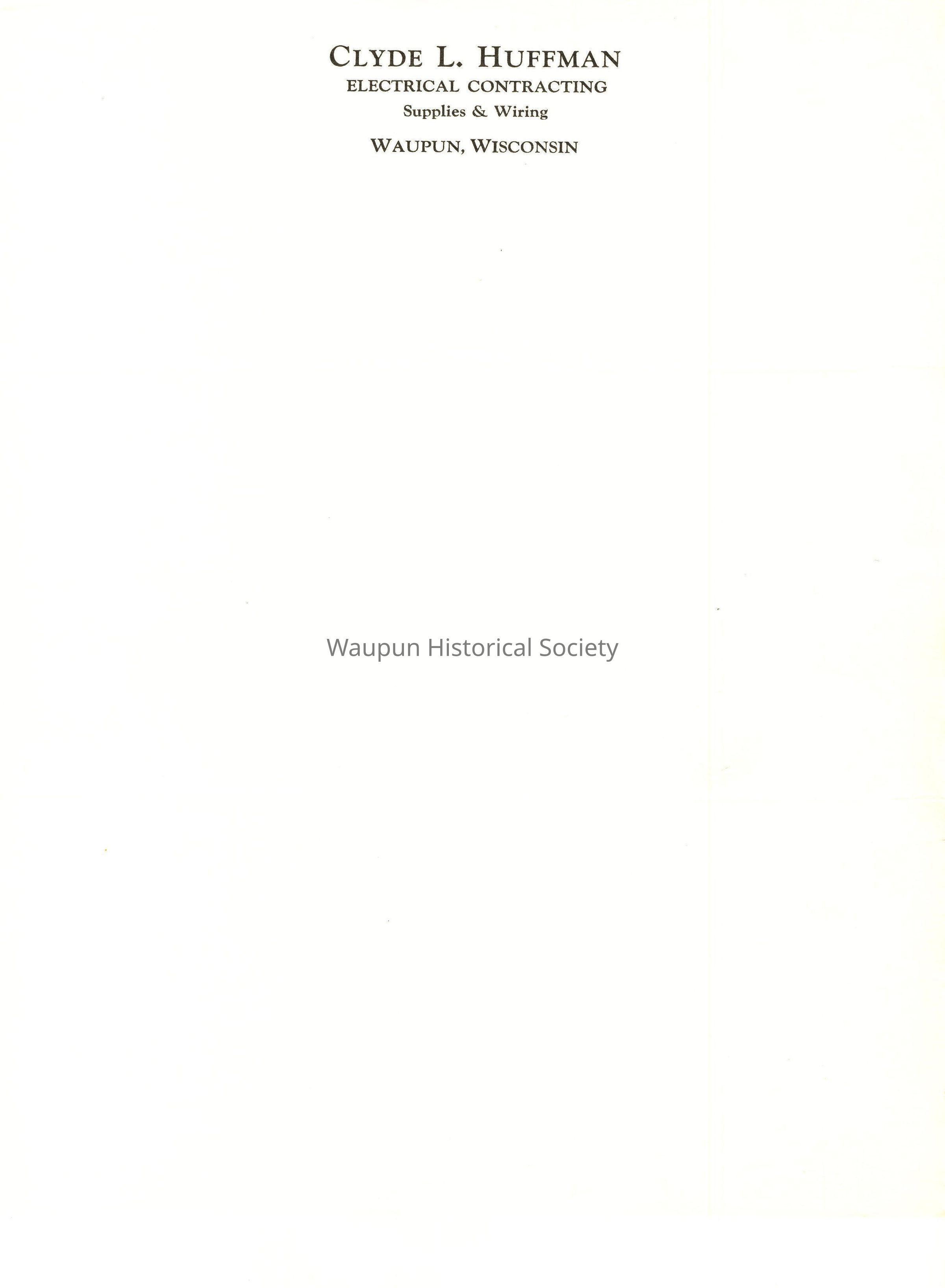 2 sizes of Letterhead sheets for Clyde L. Huffman, Electrical Contracting, Suppplies and Wiring, Waupun, Wisconsin.