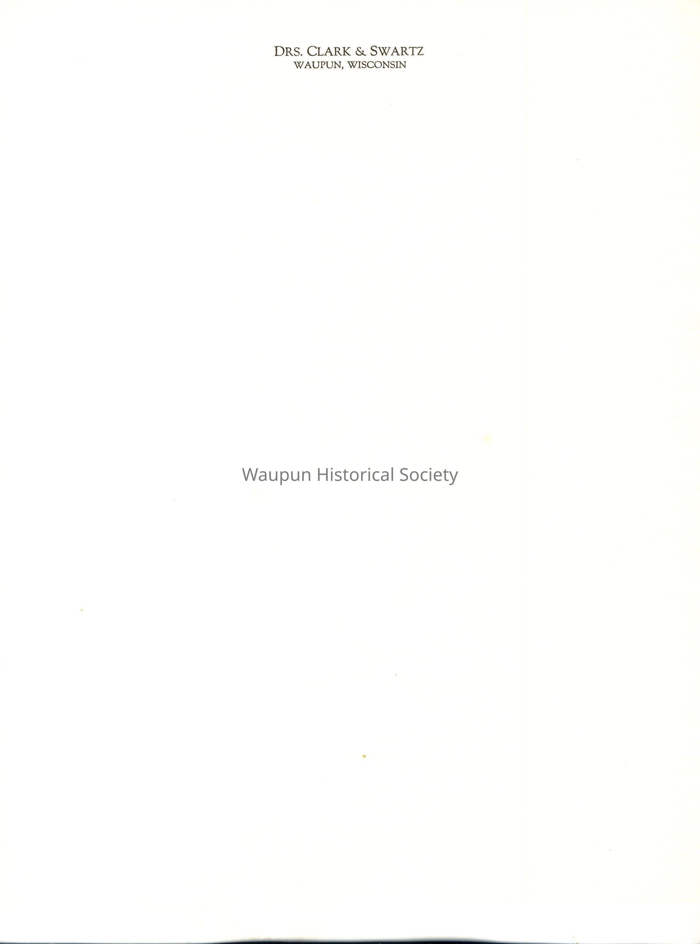 Letterhead for DRS. CLARK & SWARTZ, Waupun, WisconsinAcquisition