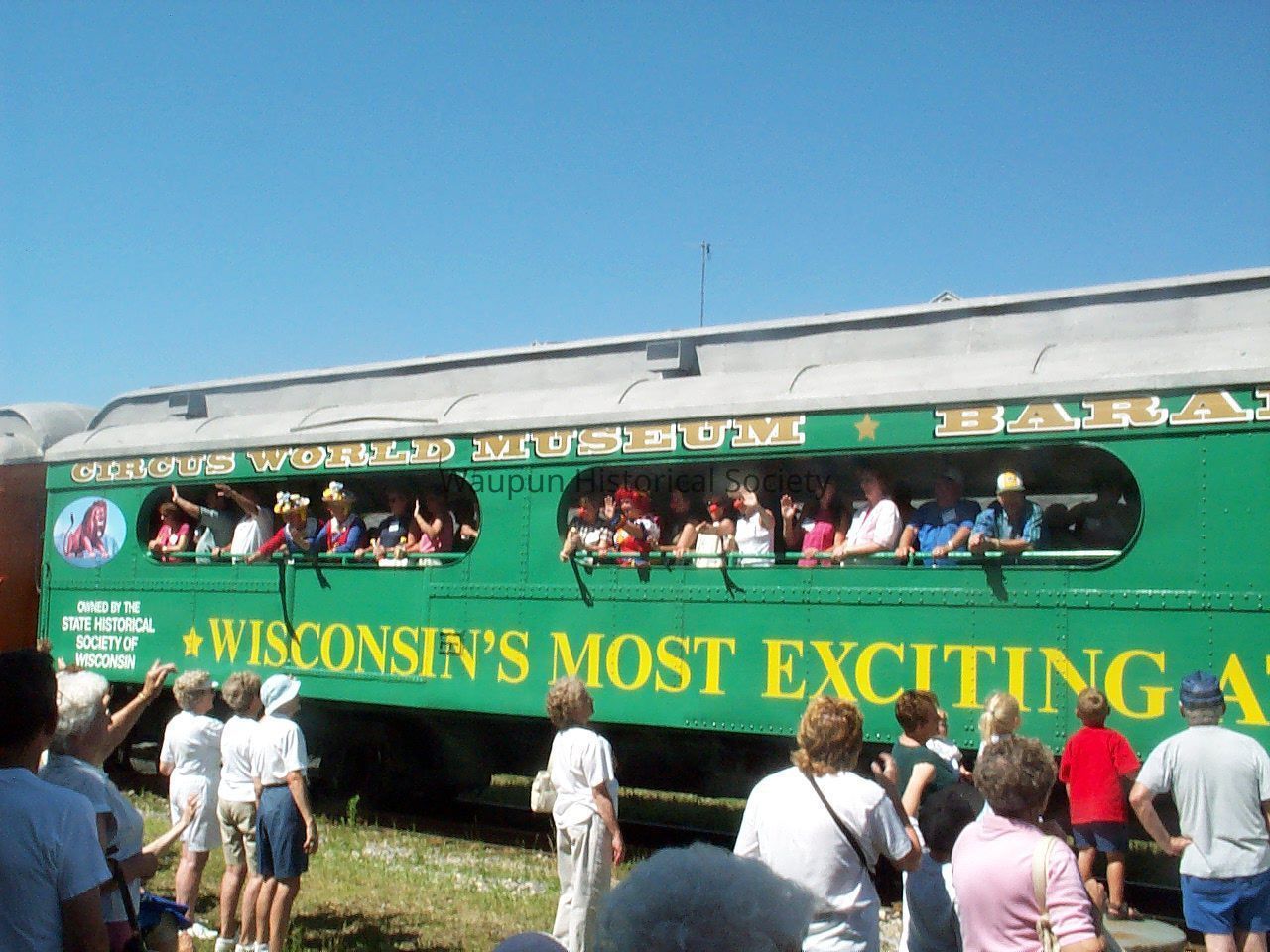 Circus World Museum train. A collection of Photographs, received in digital format, showing the visit of the Circus World Museum train stopping in Waupun on Monday, July 9, on it's way to the Circus Parade in Milwaukee.