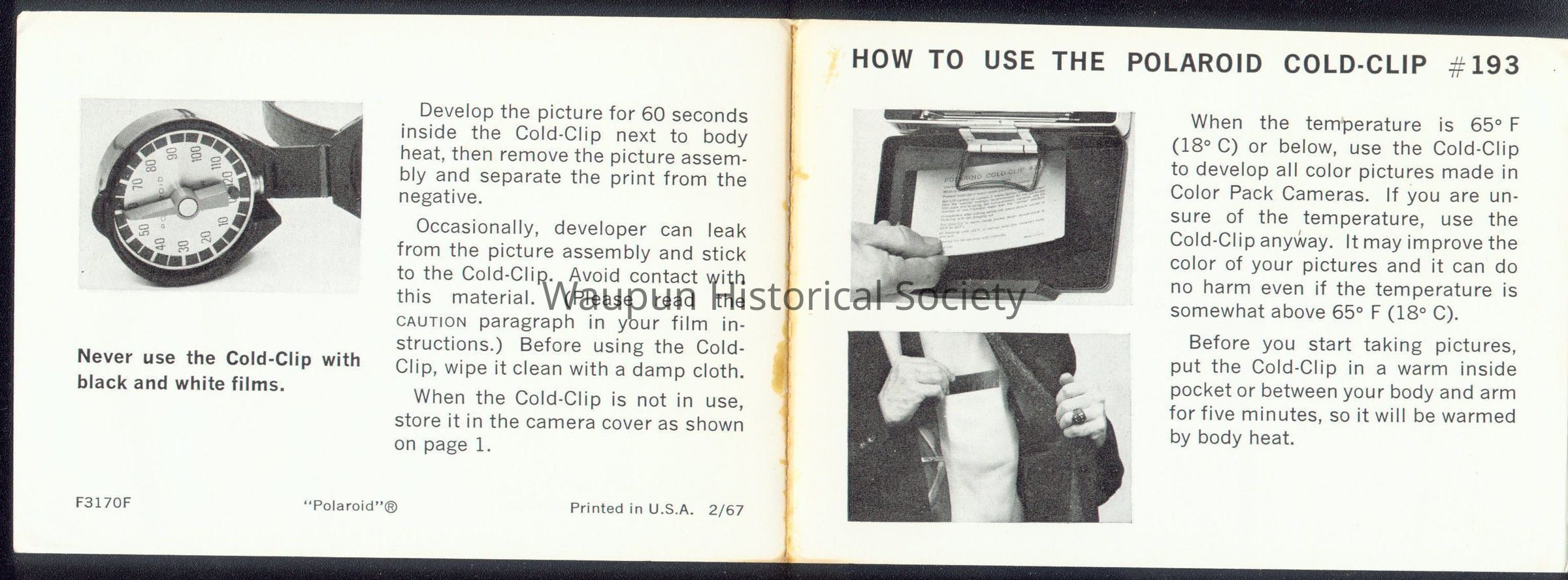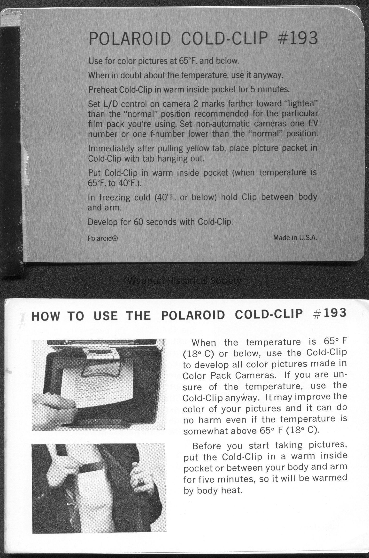 Donated by Al Thompson: Cold clip #193 used in cold temperatures with the Polaroid Land Camera Model 230 Circa 1960'sAcquisition