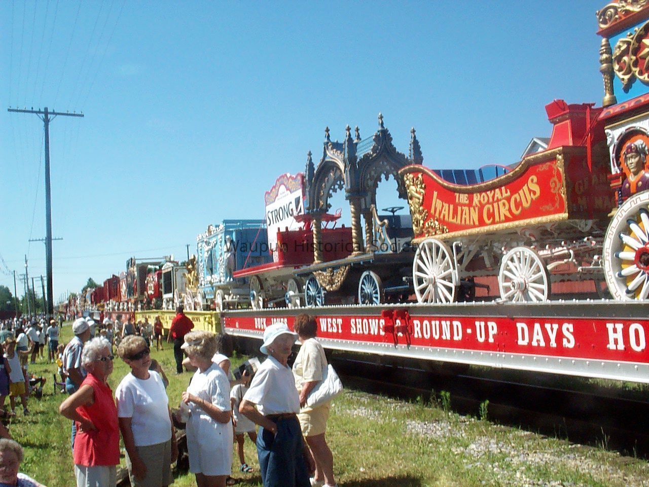 Circus World Museum train. A collection of Photographs, received in digital format, showing the visit of the Circus World Museum train stopping in Waupun on Monday, July 9, on it's way to the Circus Parade in Milwaukee.