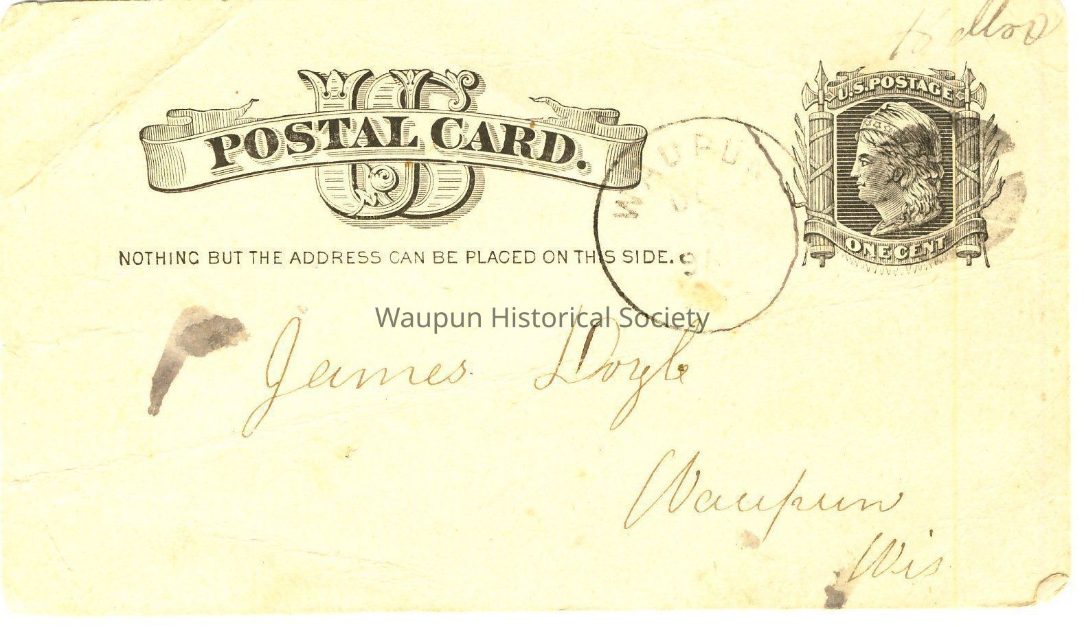 Postal Card addressed to James Doyle, Waupun, Wis.