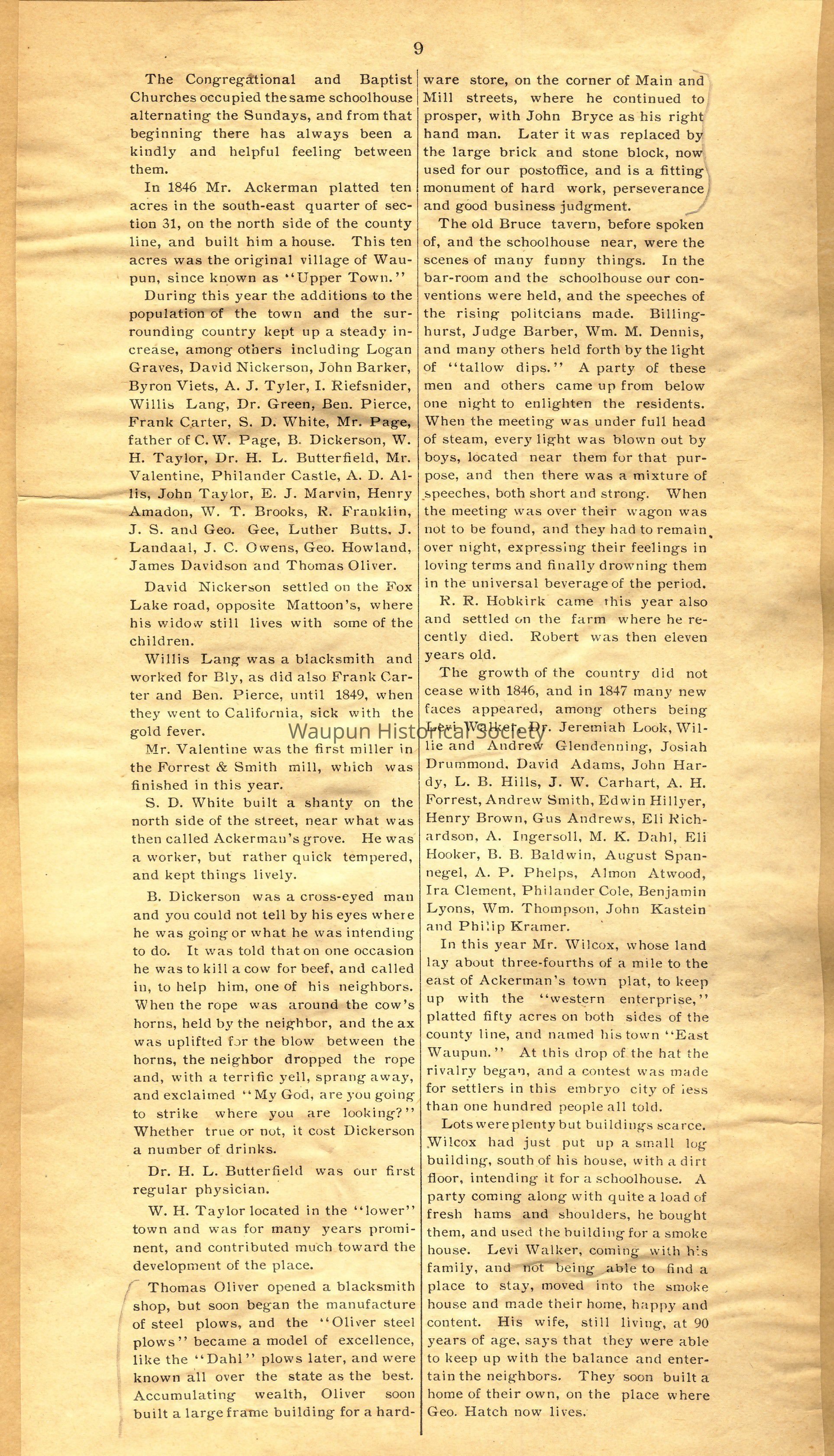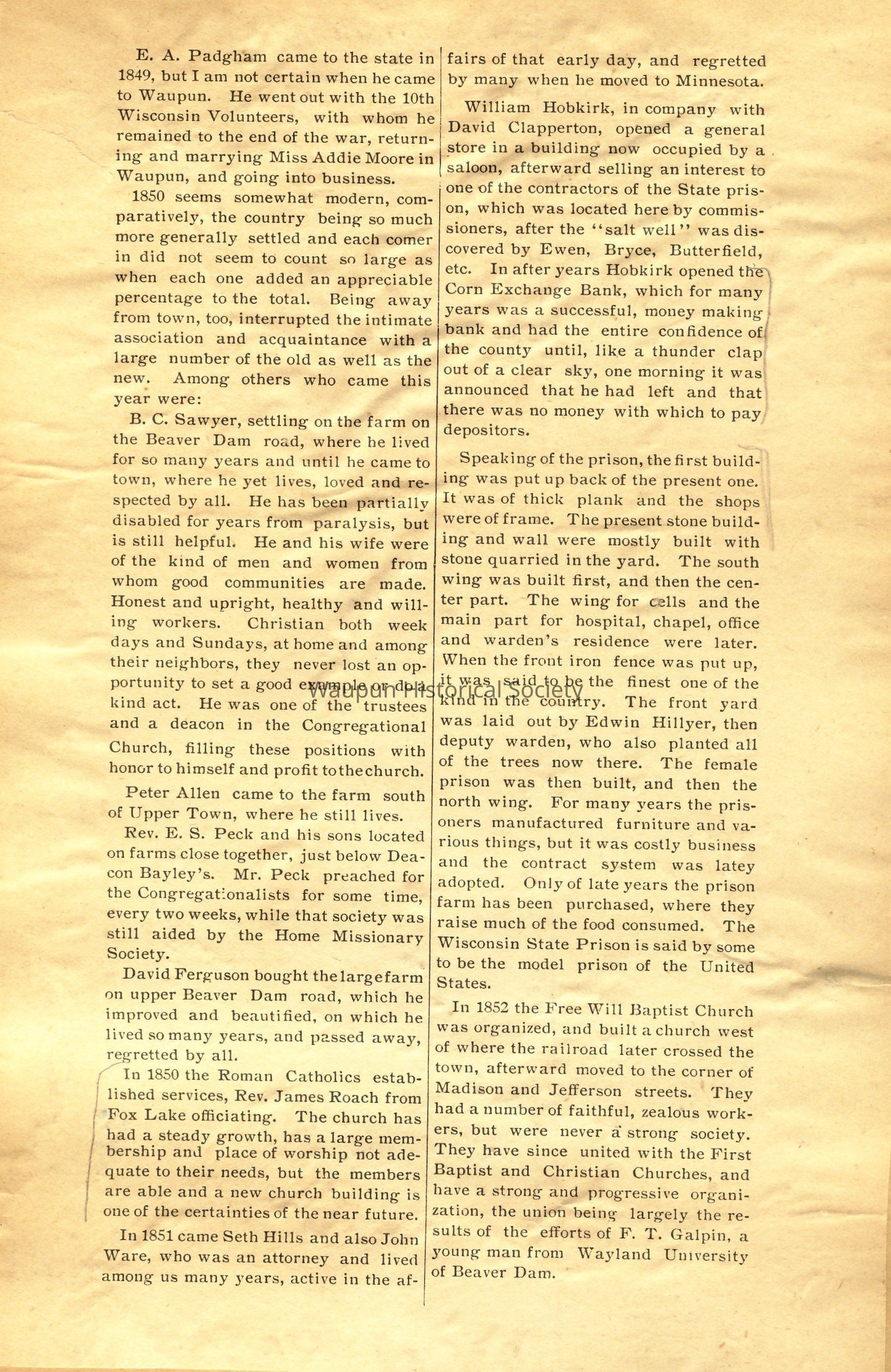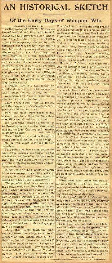 EARLY HISTORICAL SKETCH OF WAUPUN.