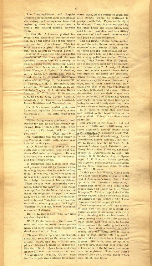 Mr. Ackerman located a claim on the south-east quarter of section thirty-one, in Fond du Lac County, and another in Dodge County.