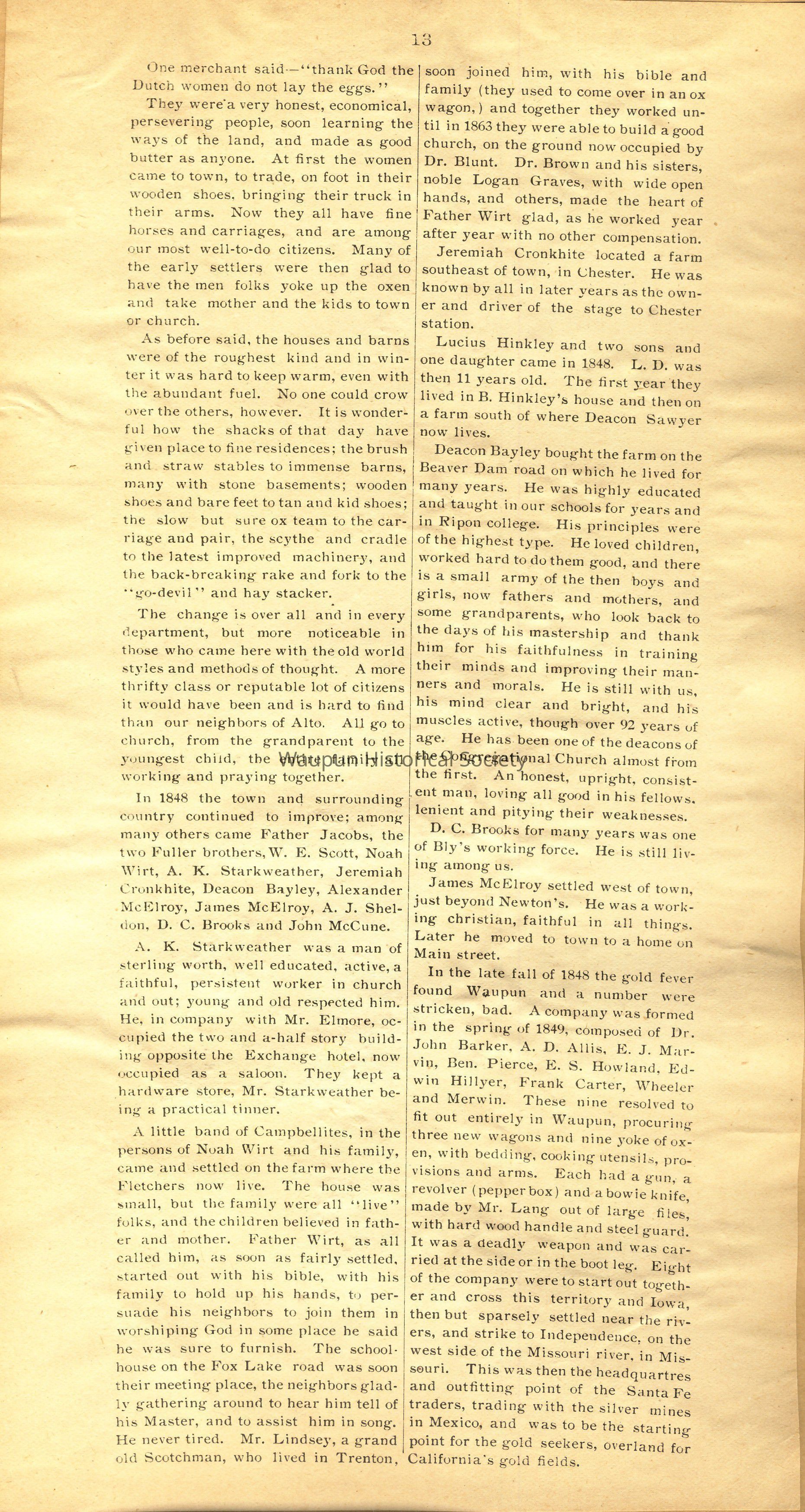 Copy of newspaper article taken from The Waupun Leader News of Friday, December 13, 1901.